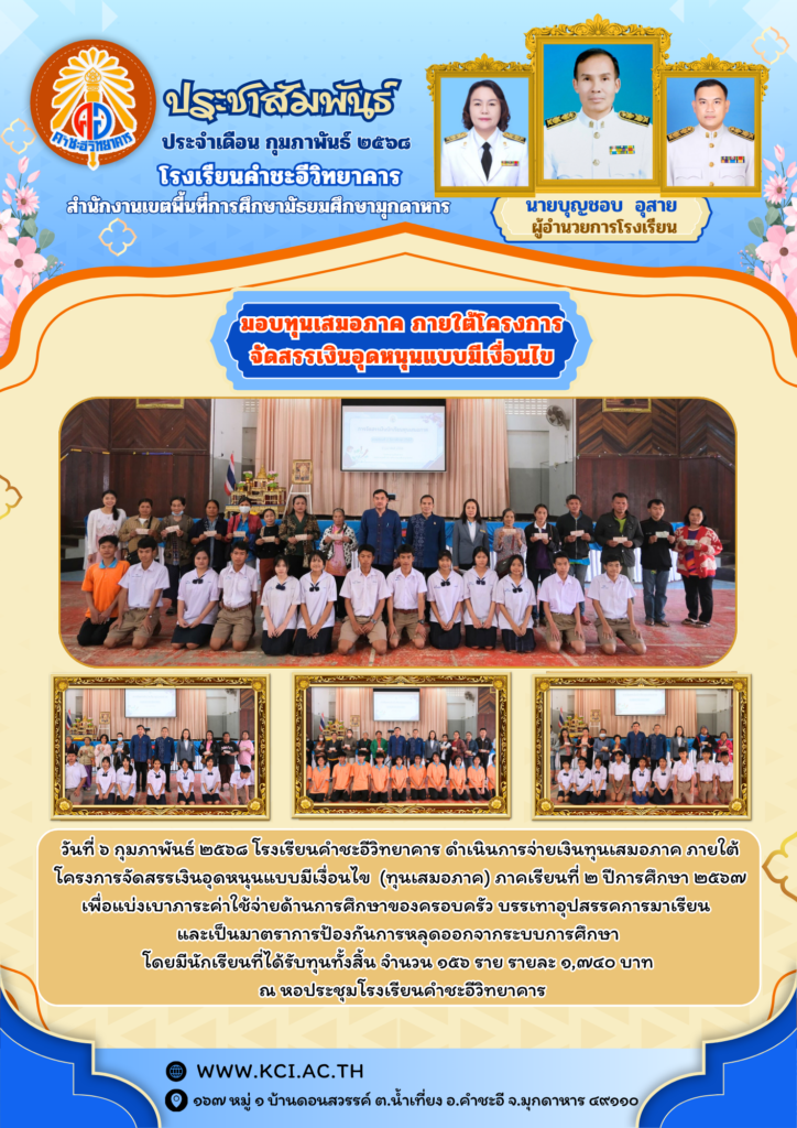 การขับเคลื่อนตามนโยบาย สพฐ. มอบทุนเสมอภาค ภายใต้โครงการจัดสรรเงินอุดหนุนแบบมีเงื่อนไข จำนวน ๑๕๖ ทุน February 9, 2025February 9, 2025 admin 0 Comments ยอดผู้อ่าน 358