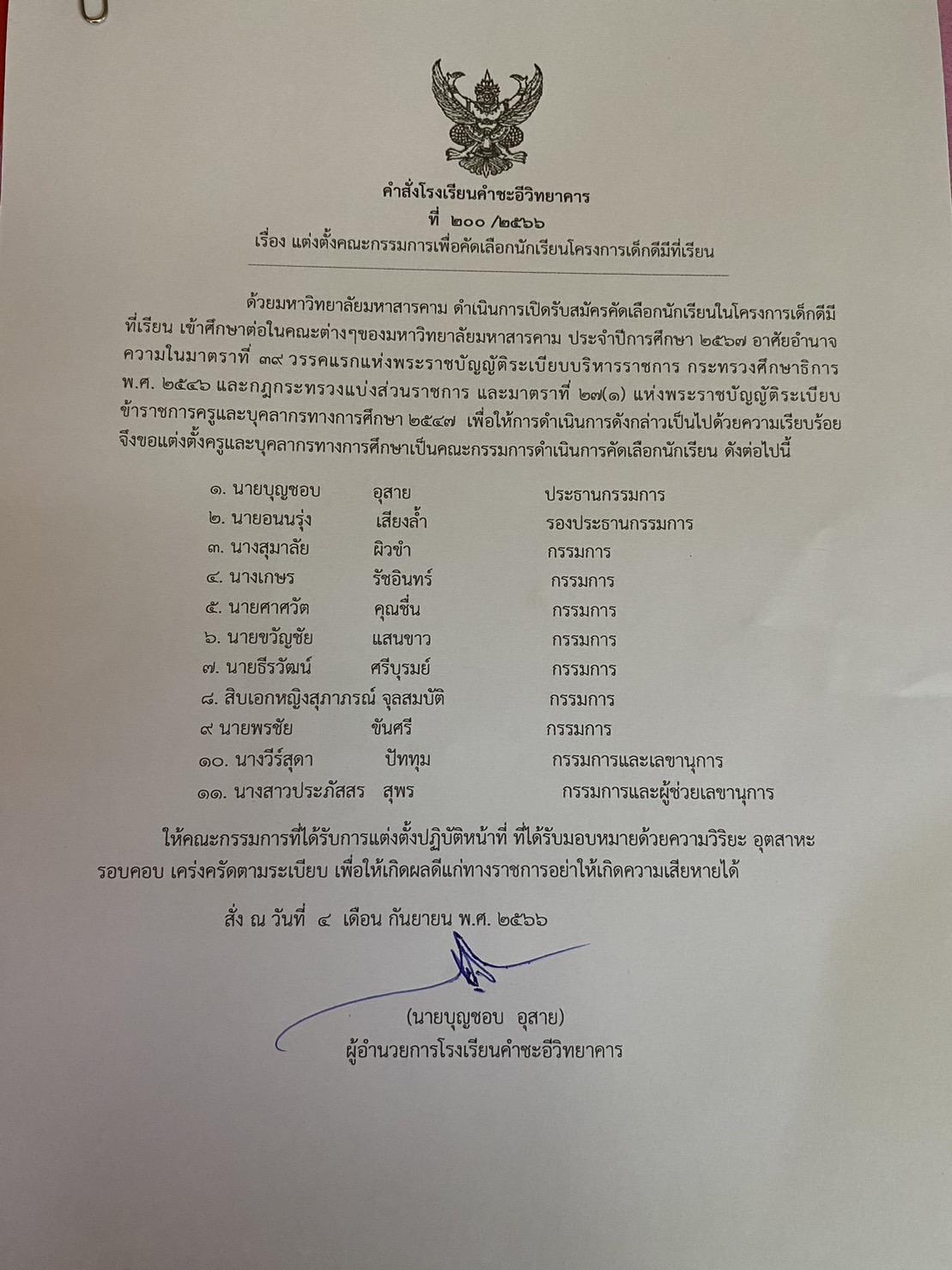 คณะกรรมกลั่นกรอง ร่วมสัมภาษณ์นักเรียนเพื่อตรวจสอบคุณสมบัติตามโครงการเด็กดีมีที่เรียน ของมหาวิทยาลัยมหาสารคาม
