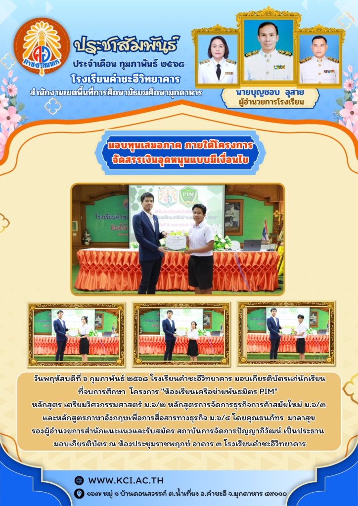 ห้องเรียนพิเศษวิทยาศาสตร์/ห้องเรียน PIM พิธีมอบเกียรติบัตรแก่นักเรียนที่จบการศึกษา โครงการ “ห้องเรียนเครือข่ายพันธมิตร PIM” ชั้นมัธยมศึกษาปีที่ ๖ ปีการศึกษา ๒๕๖๗ February 9, 2025February 9, 2025 admin 0 Comments ยอดผู้อ่าน 338