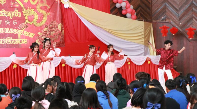 วันที่ ๒๘ มกราคม ๒๕๖๘ กลุ่มสาระการเรียนรู้ภาษาต่างประเทศ นำโดย ครูมยุรา เมืองฮาม หัวหน้ากลุ่มสาระ และคณะครู ได้จัดกิจกรรมวันตรุษจีน ประจำปี ๒๕๖๘ โดยมีวัตถุประสงค์เพื่อให้นักเรียนได้เรียนรู้ประเพณีวัฒนธรรมของคนไทยเชื้อสายจีน กระตุ้นให้นักเรียนร่วมกันสืบสาน และอนุรักษ์ประเพณีทำบุญตรุษจีน