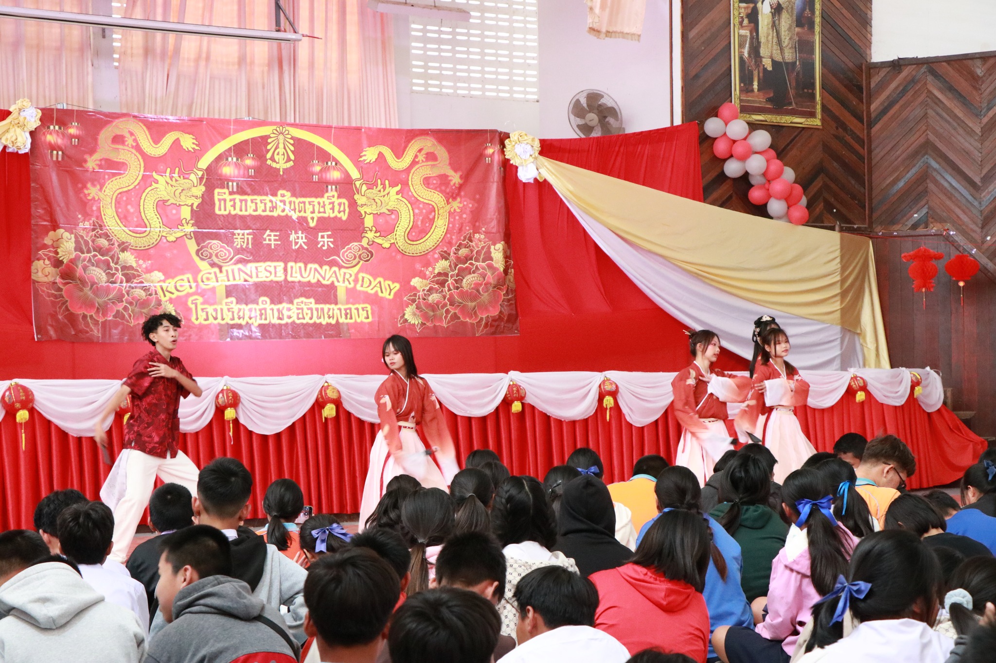 วันที่ ๒๘ มกราคม ๒๕๖๘ กลุ่มสาระการเรียนรู้ภาษาต่างประเทศ นำโดย ครูมยุรา เมืองฮาม หัวหน้ากลุ่มสาระ และคณะครู ได้จัดกิจกรรมวันตรุษจีน ประจำปี ๒๕๖๘ โดยมีวัตถุประสงค์เพื่อให้นักเรียนได้เรียนรู้ประเพณีวัฒนธรรมของคนไทยเชื้อสายจีน กระตุ้นให้นักเรียนร่วมกันสืบสาน และอนุรักษ์ประเพณีทำบุญตรุษจีน