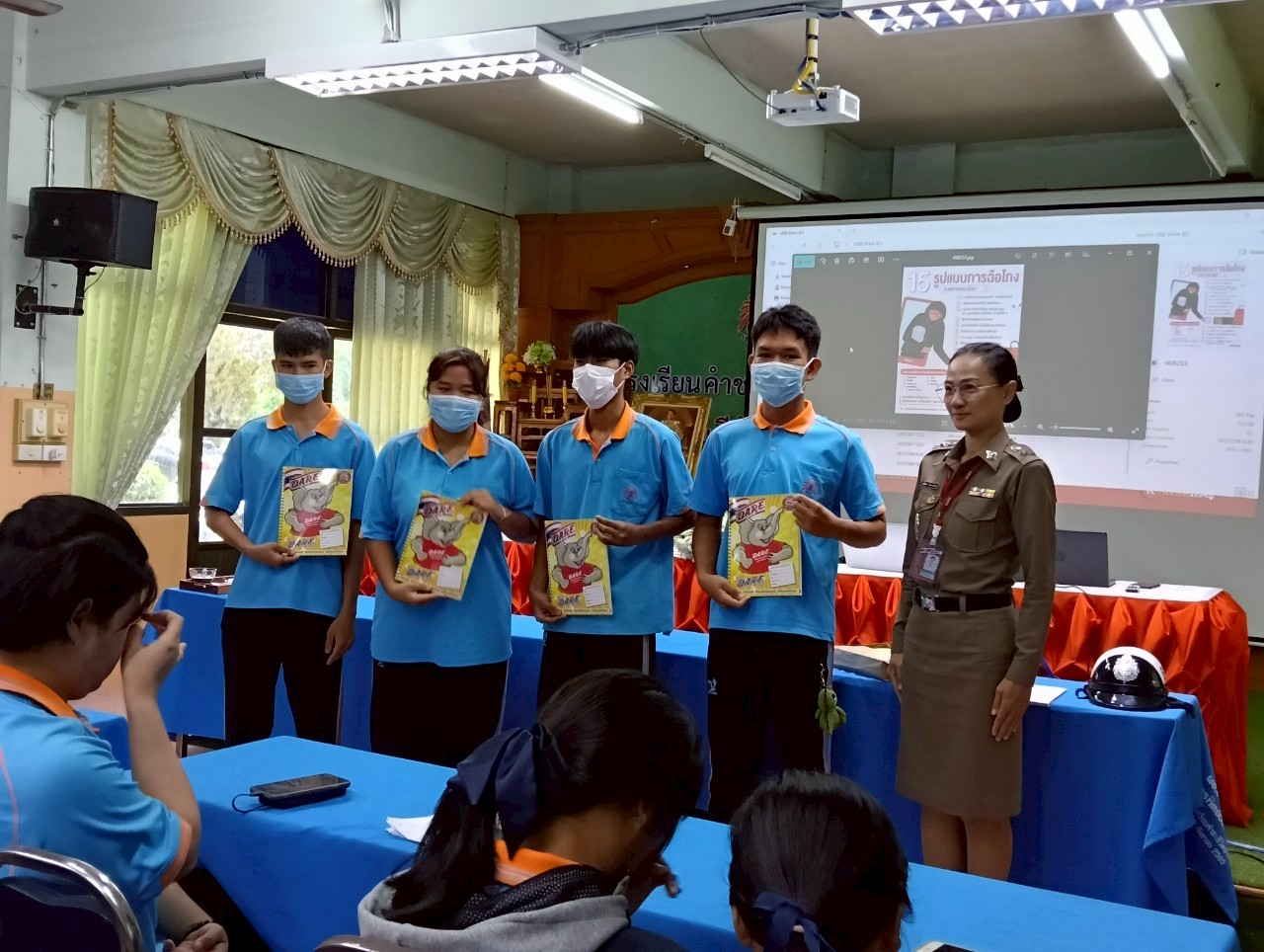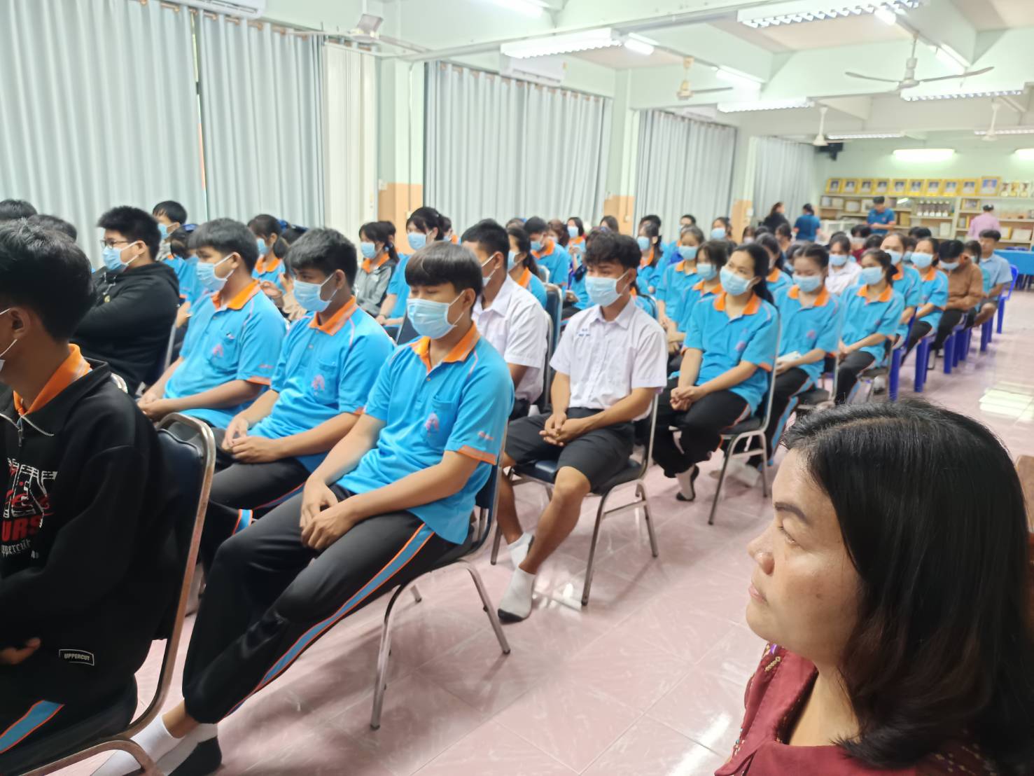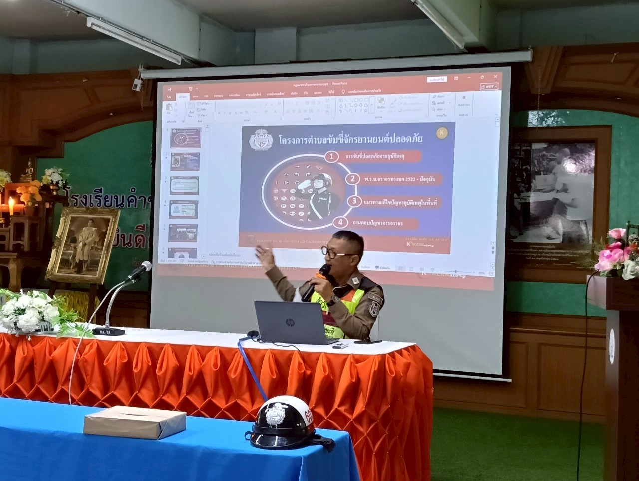 นักเรียนชั้น ม.๖ อบรม เรื่อง ขับขี่ปลอดภัย ที่ห้องประชุมราชพฤกษ