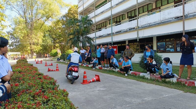 นักเรียนเข้าอบรมตามโครงการขับขี่ปลอดภัย ใส่ใจกฏจราจร