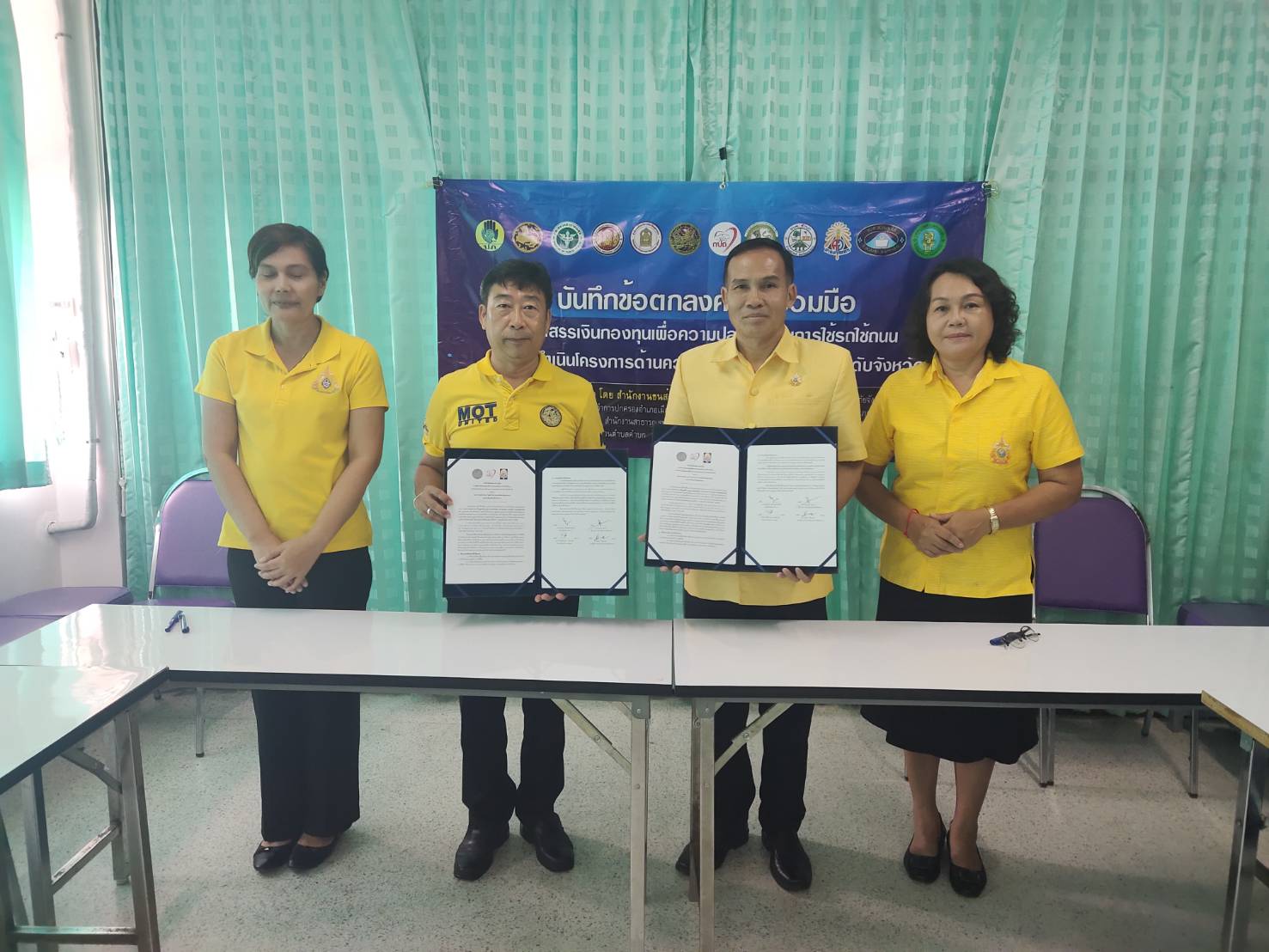 นายบุญชอบ อุสาย ผู้อำนวยการ และ รองอุลิยา ร่วมลงนามบันทึกข้อตกลงความร่วมมือกับกรมการขนส่งทางบก มุกดาหาร