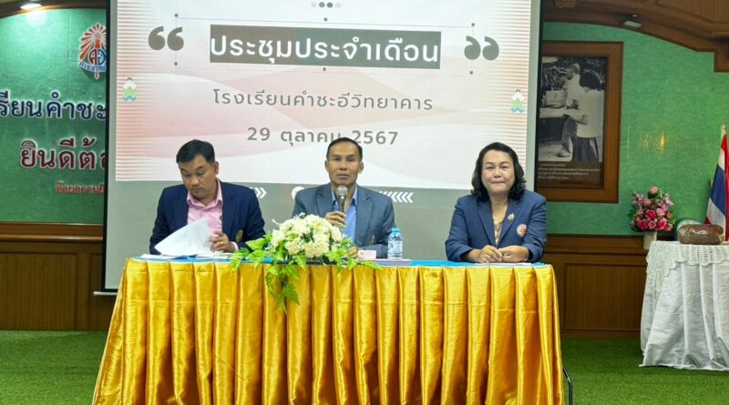 นายบุญชอบ อุสาย ผู้อำนวยการโรงเรียนคำชะอีวิทยาคาร เป็นประธานการประชุมครูและบุคลากรทางการศึกษา โรงเรียนคำชะอีวิทยาคาร ครั้งที่ ๖/๒๕๖๗ เรื่อง การเตรียมความพร้อมก่อนเปิดภาคเรียนที่ ๒ ปีการศึกษา ๒๕๖๗ ซึ่งตามกำหนดการเปิดภาคเรียน คือ วันพุธ ที่ ๓๐ ตุลาคม ๒๕๖๗ นี้ ซึ่งทางโรงเรียนมีนักศึกษาฝึกประสบการณ์วิชาชีพครู จำนวน ๑ ราย คือ นายรัฐภาคย์ พลชัย สาขาวิชาพลศึกษา มหาวิทยาลัยพะเยา และ นักศึกษาขั้นการฝึกประสบการณ์วิชาชีพ ระยะเวลา ๑๕ วัน จำนวน ๒ ราย คือ นางสาวอวัสดา ฤทธิวงศ์ และ นายธีรพงศ์ นาโสก
