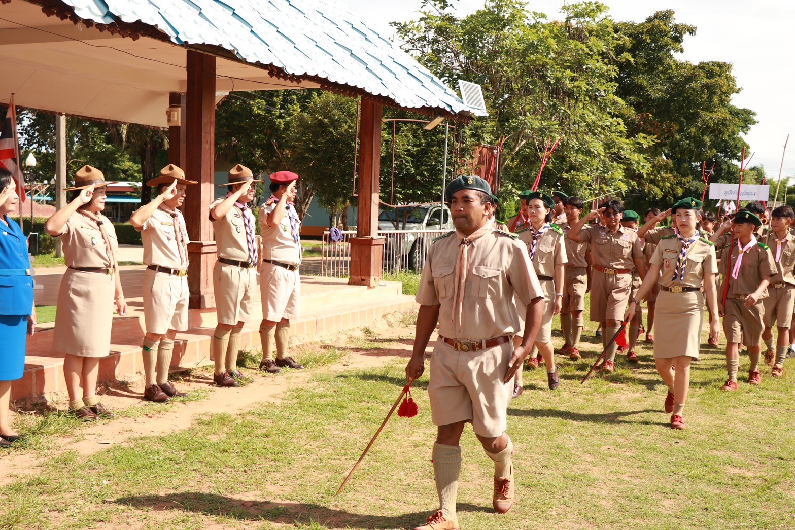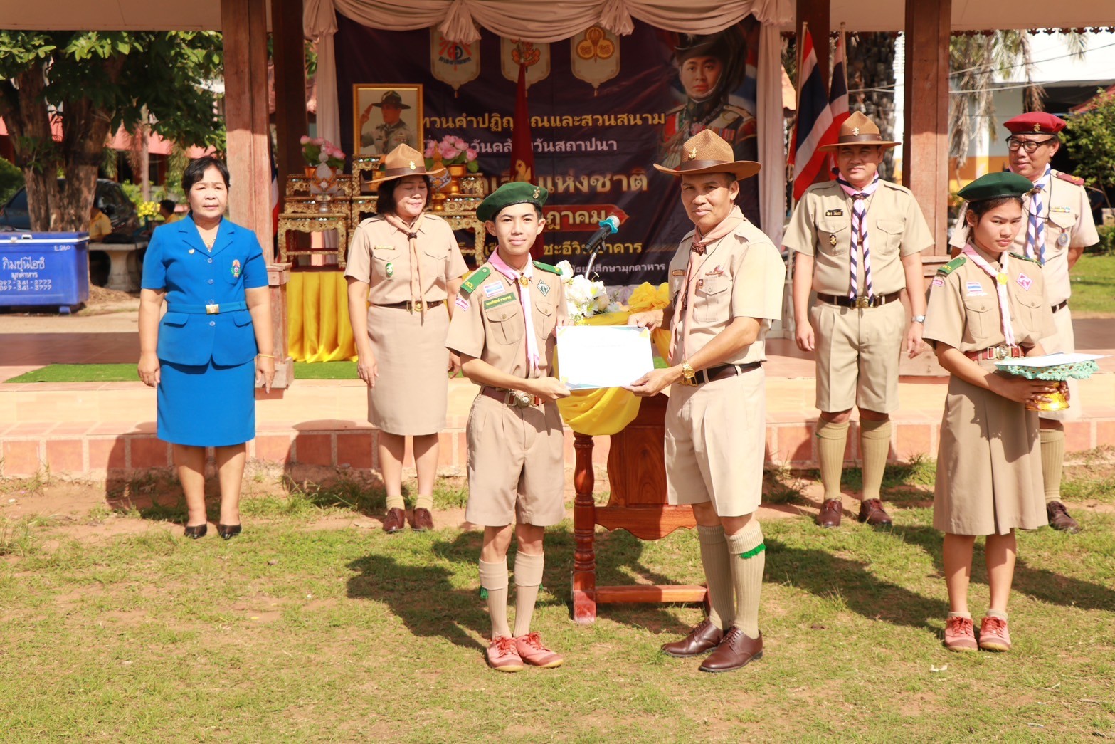 นายบุญชอบ อุสาย ผู้อำนวยการโรงเรียนคำชะอีวิทยาคาร พร้อมด้วยรองผู้อำนวยการ คณะผู้กำกับ และ ลูกเสือ-เนตรนารี ร่วมกันปฏิบัติพิธีทบทวนคำปฏิญาณและสวนสนาม เนื่องในวันคล้ายวันสถาปนาลูกเสือแห่งชาติ ๑ กรกฎาคม ณ โรงเรียนคำชะอีวิทยาคาร