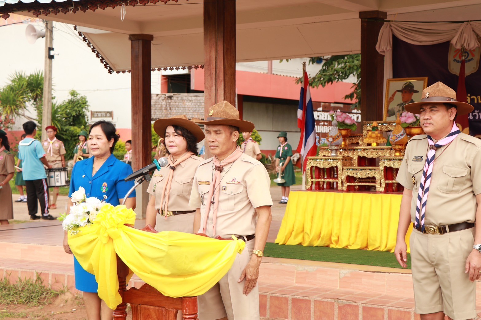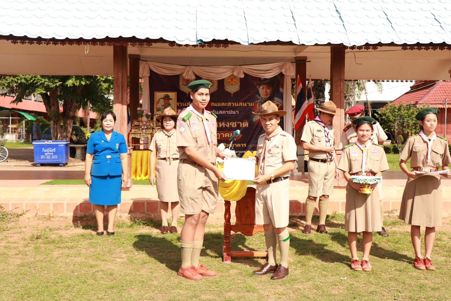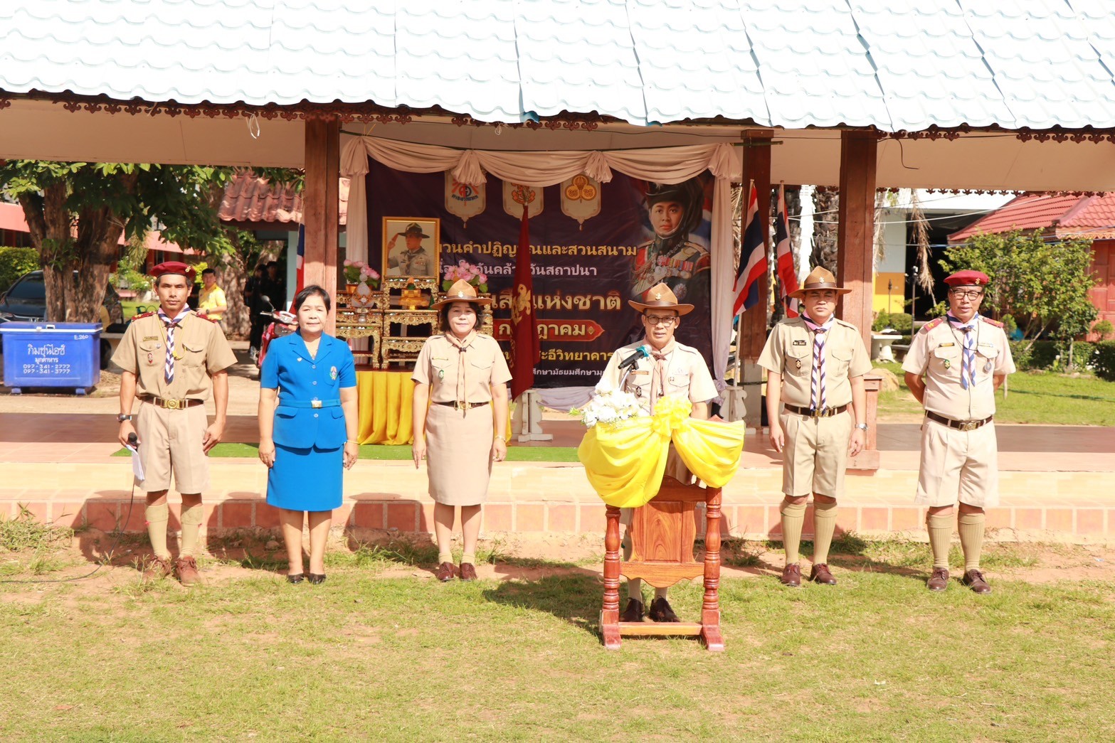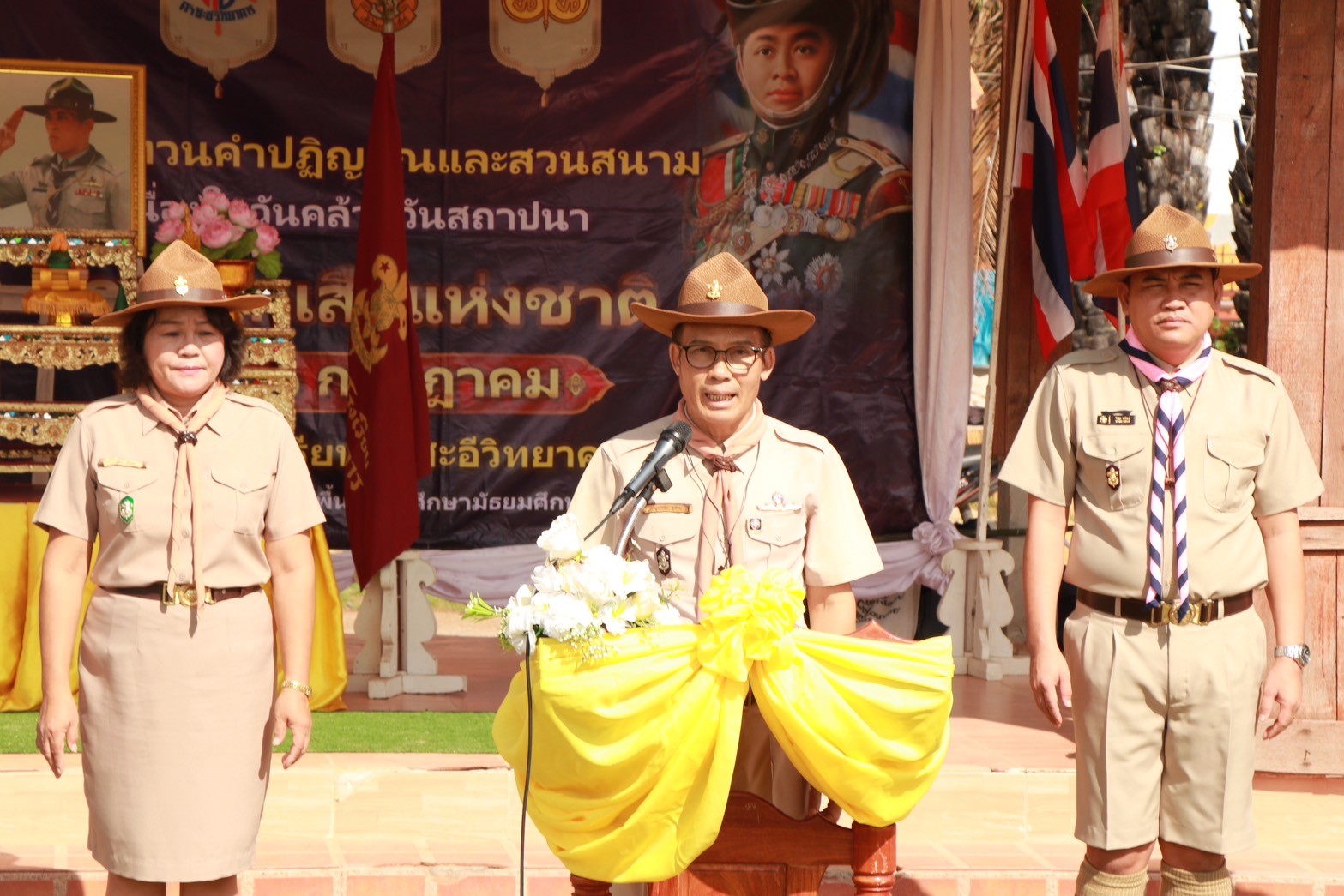 นายบุญชอบ อุสาย ผู้อำนวยการโรงเรียนคำชะอีวิทยาคาร พร้อมด้วยรองผู้อำนวยการ คณะผู้กำกับ และ ลูกเสือ-เนตรนารี ร่วมกันปฏิบัติพิธีทบทวนคำปฏิญาณและสวนสนาม เนื่องในวันคล้ายวันสถาปนาลูกเสือแห่งชาติ ๑ กรกฎาคม ณ โรงเรียนคำชะอีวิทยาคาร