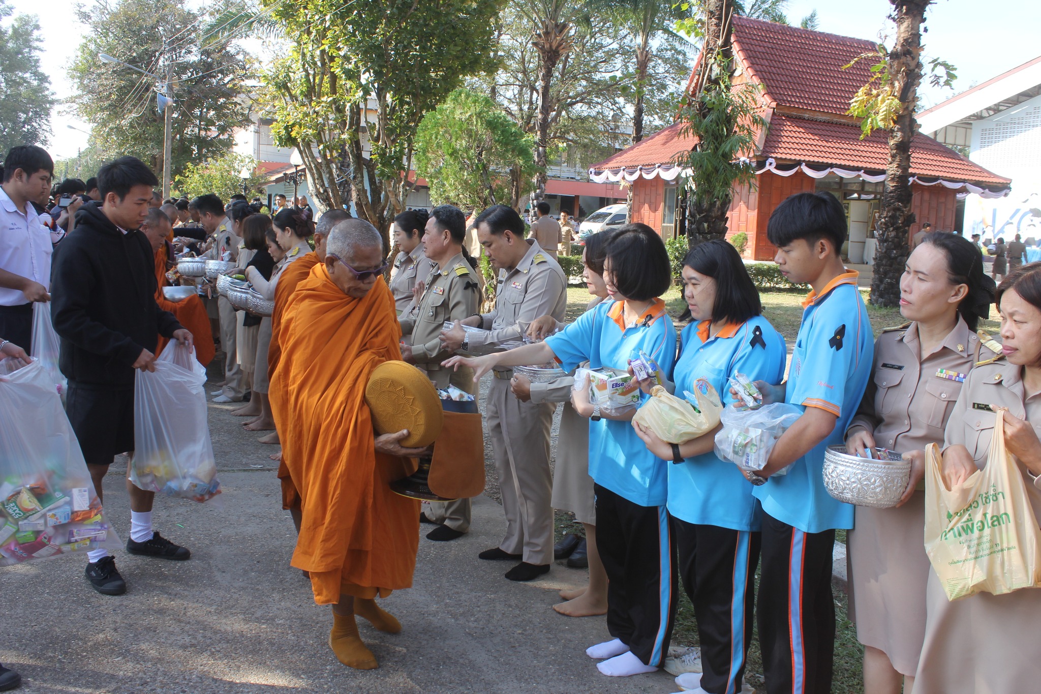 - หลังการแสดงธรรม ประธานในพิธีกล่าวถวายราชสดุดี ประเคนเครื่องไทยธรรมบูชากัณฑ์เทศน์แด่พระสงฆ์ และผู้มีเกียรติร่วมถวายจตุปัจจัยไทยธรรม จากนั้นพระสงฆ์ได้อนุโมทนาและประกอบพิธีกรวดน้ำอุทิศถวายพระราชกุศล