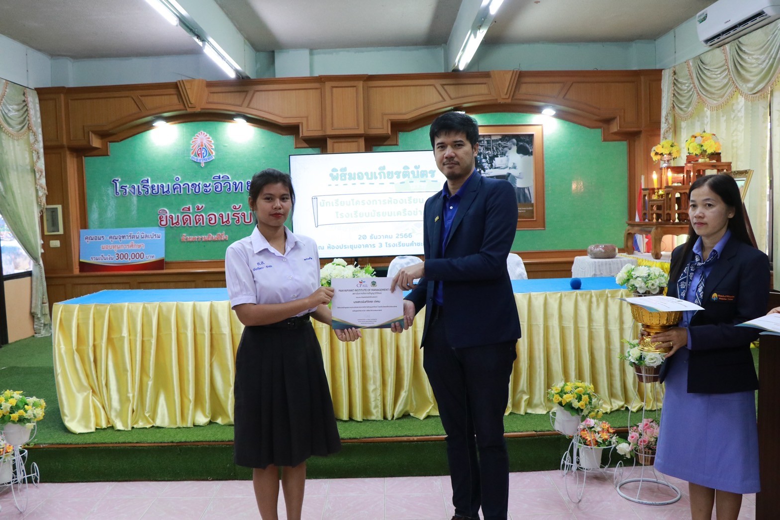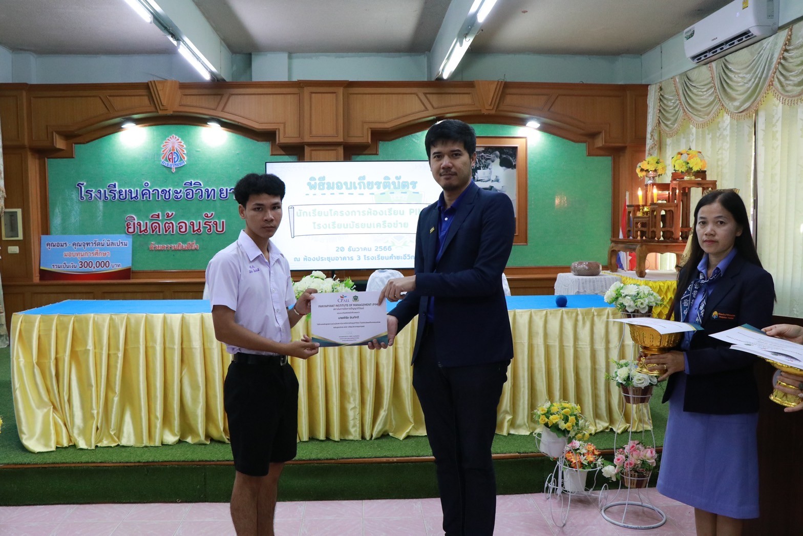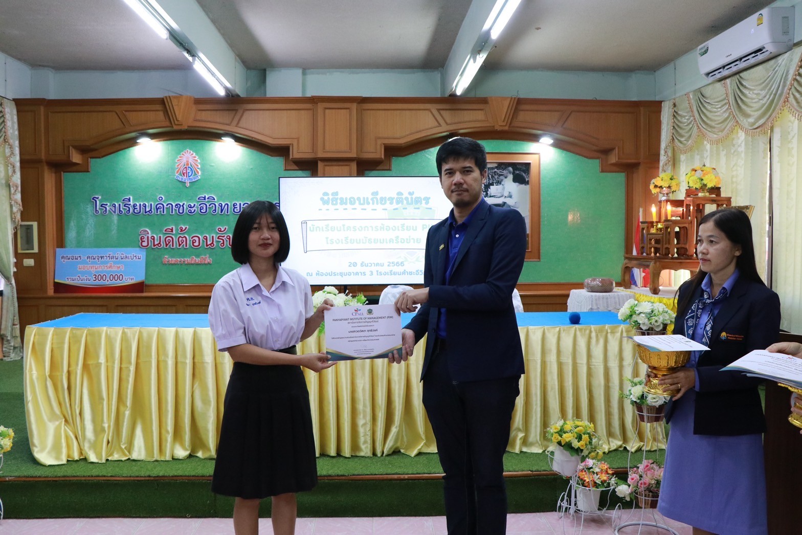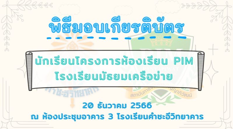 พิธีมอบเกียรติบัตร นักเรียนโครงการห้องเรียน PIM โรงเรียนมัธยมเครือข่าย ในวันที่ ๒๐ ธันวาคม ๒๕๖๖ ณ ห้องประชุมอาคาร ๓ โรงเรียนคำชะอีวิทยาคาร