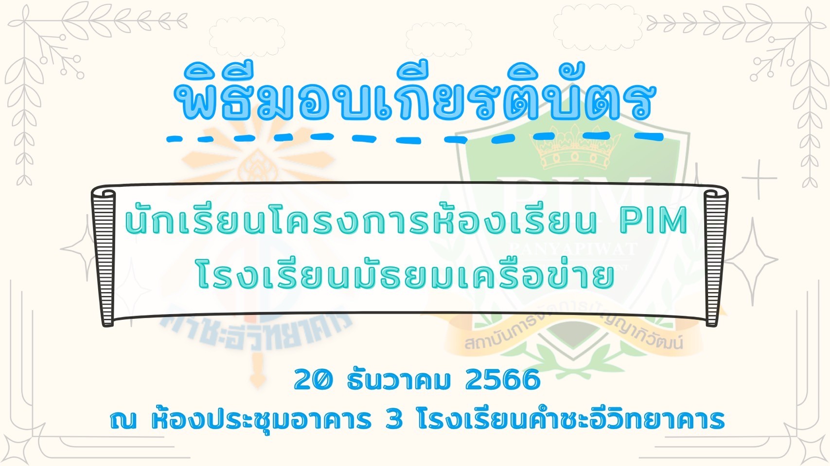 พิธีมอบเกียรติบัตรนักเรียนโครงการห้องเรียน PIM โรงเรียนมัธยมเครือข่าย