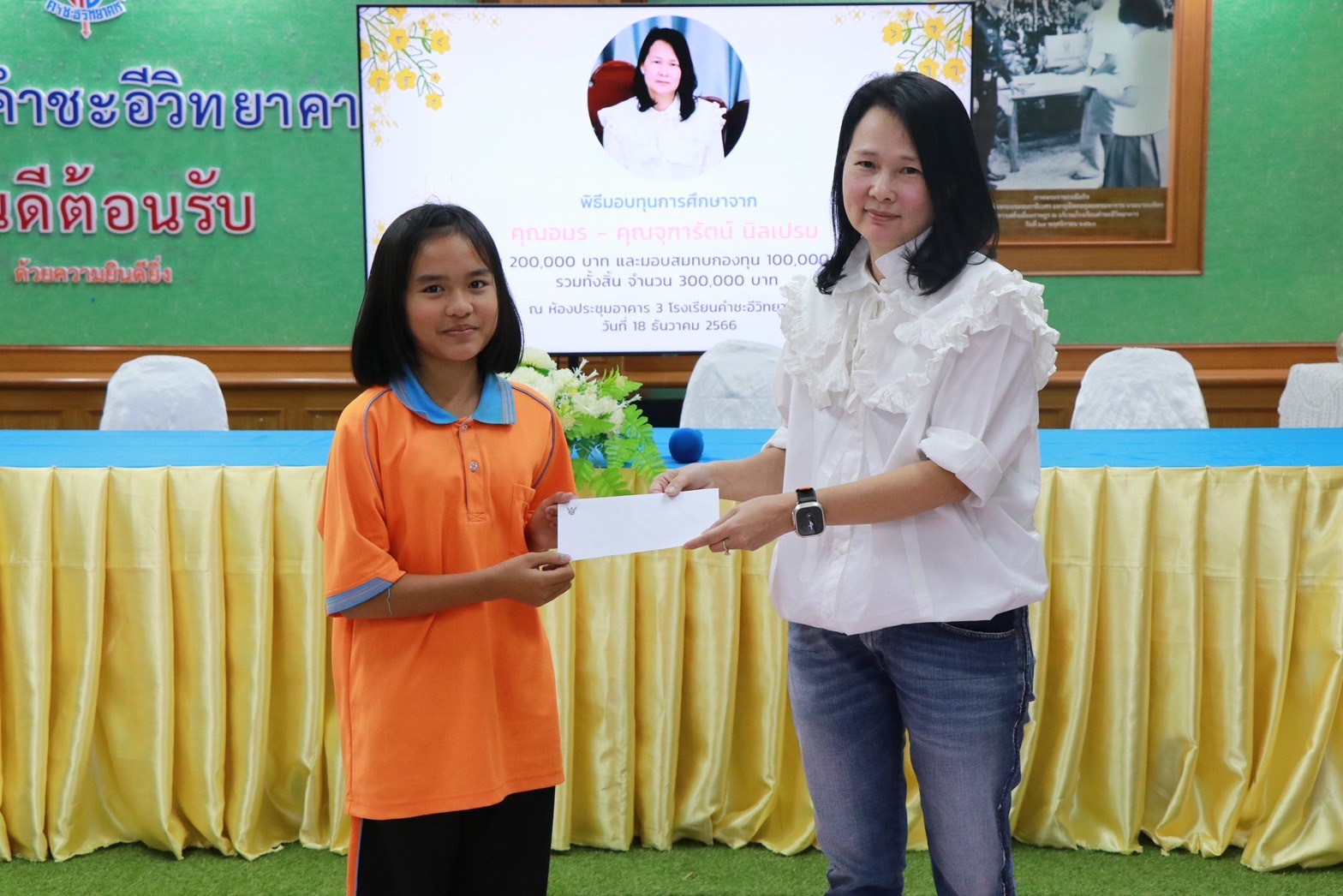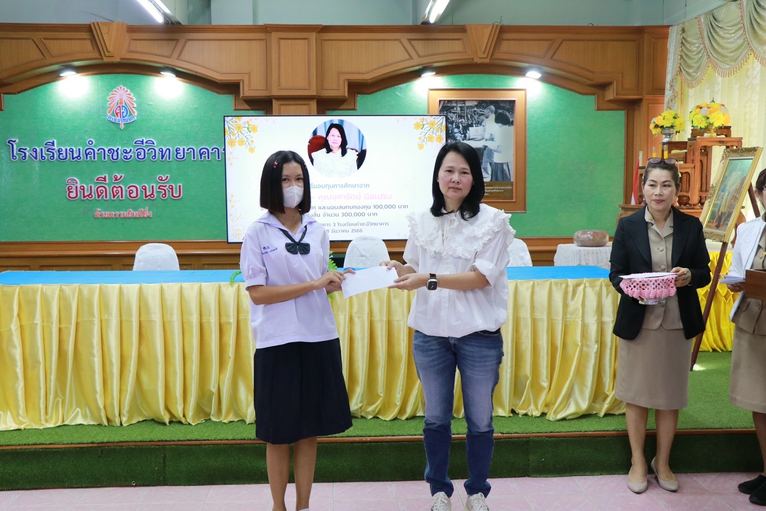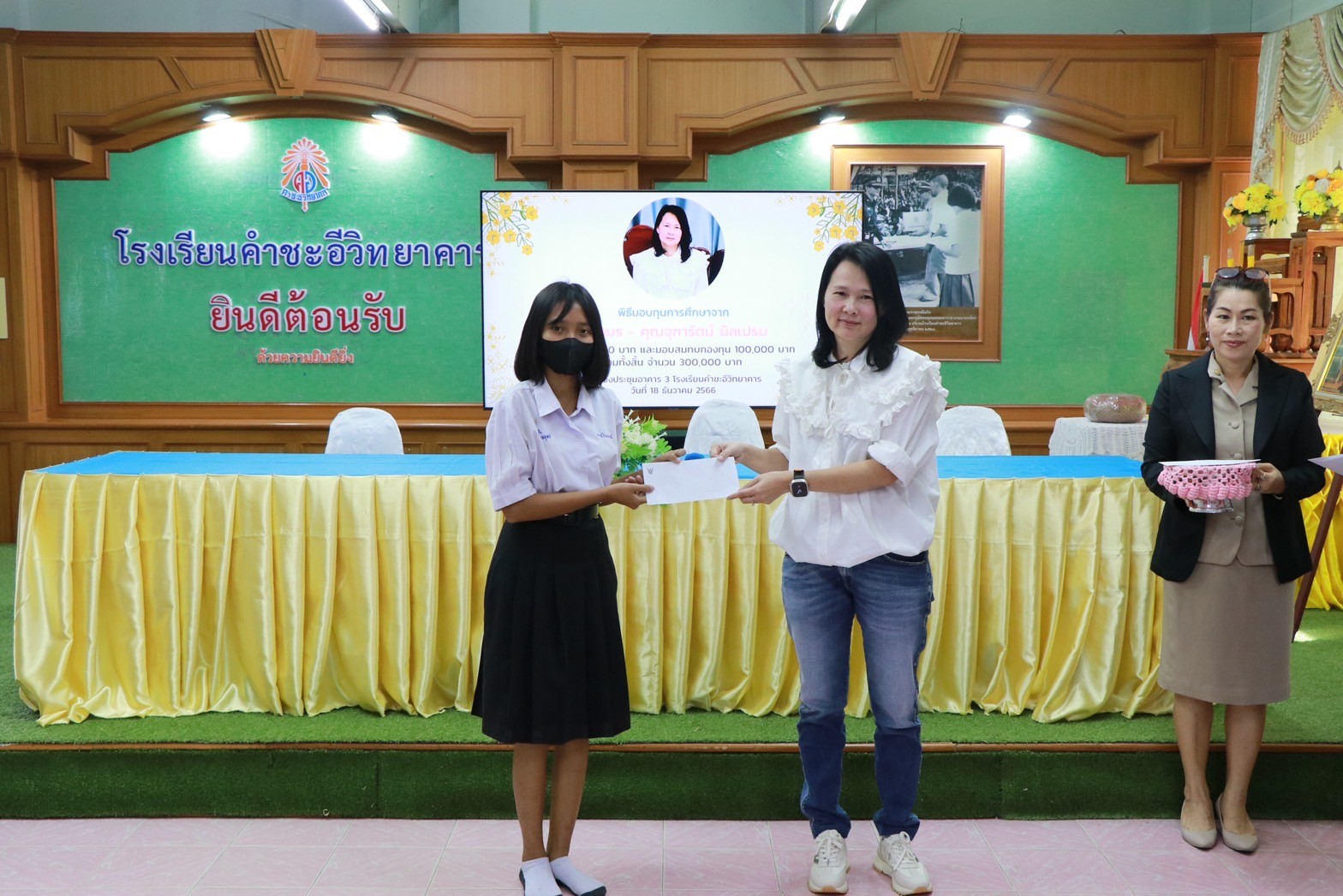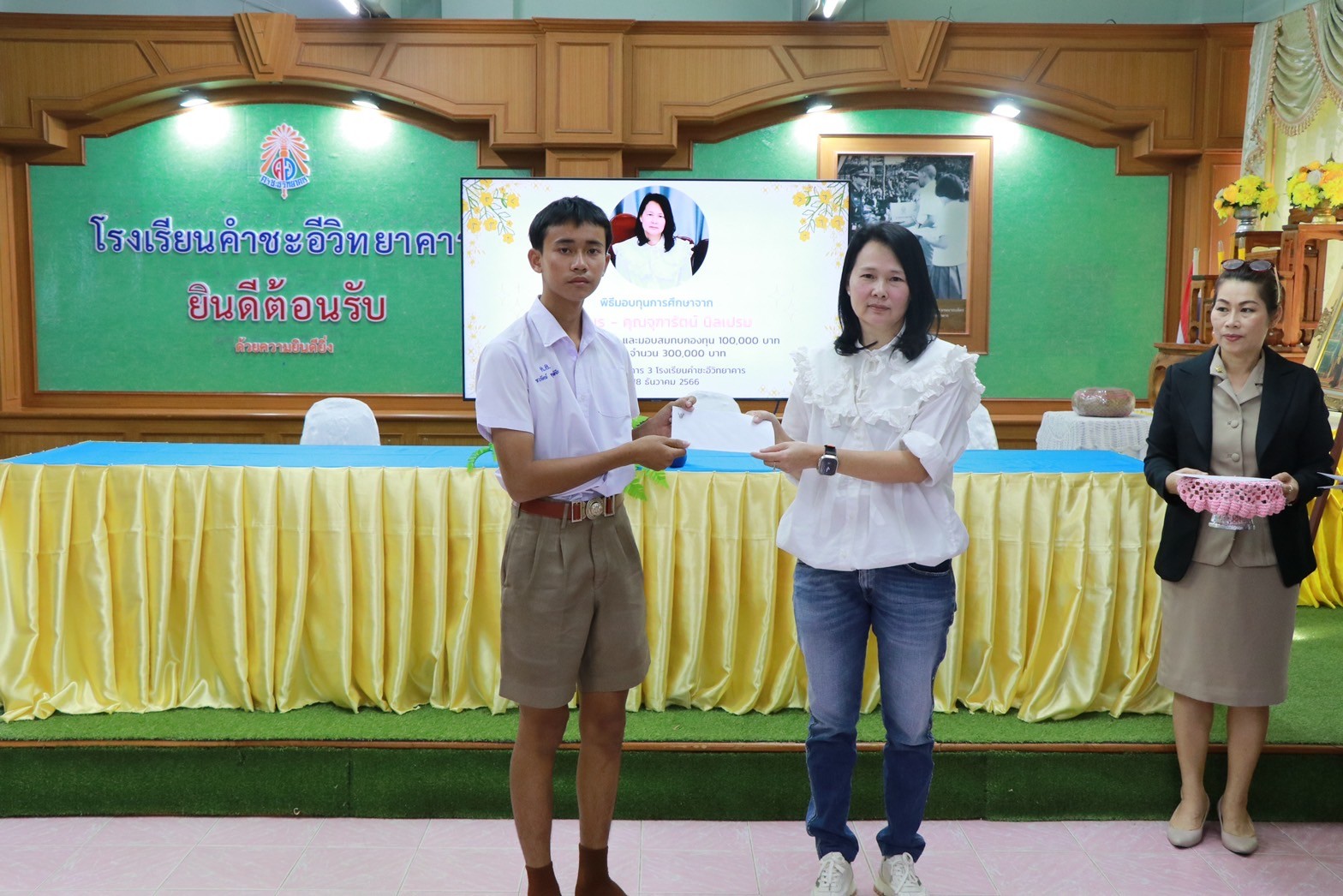 พิธีมอบทุนการศึกษาจาก คุณอมร – คุณจุฑารัตน์ นิลเปรม ให้กับนักเรียนและโรงเรียนคำชะอีวิทยาคาร ณ ห้องประชุมอาคาร ๓ โรงเรียนคำชะอีวิทยาคาร ในวันที่ ๑๘ เดือนธันวาคม พ.ศ. ๒๕๖๖ ทางโรงเรียนขอขอบพระคุณ มา ณ ที่นี้ด้วย