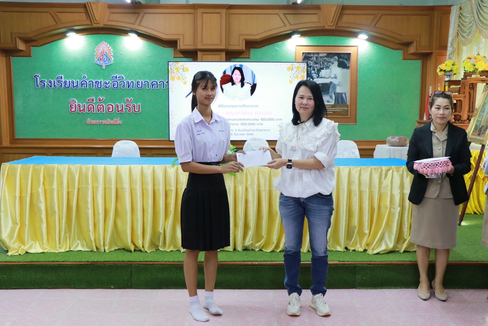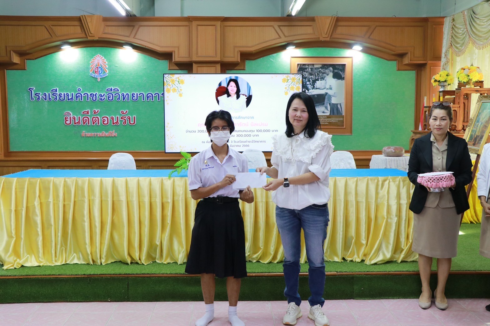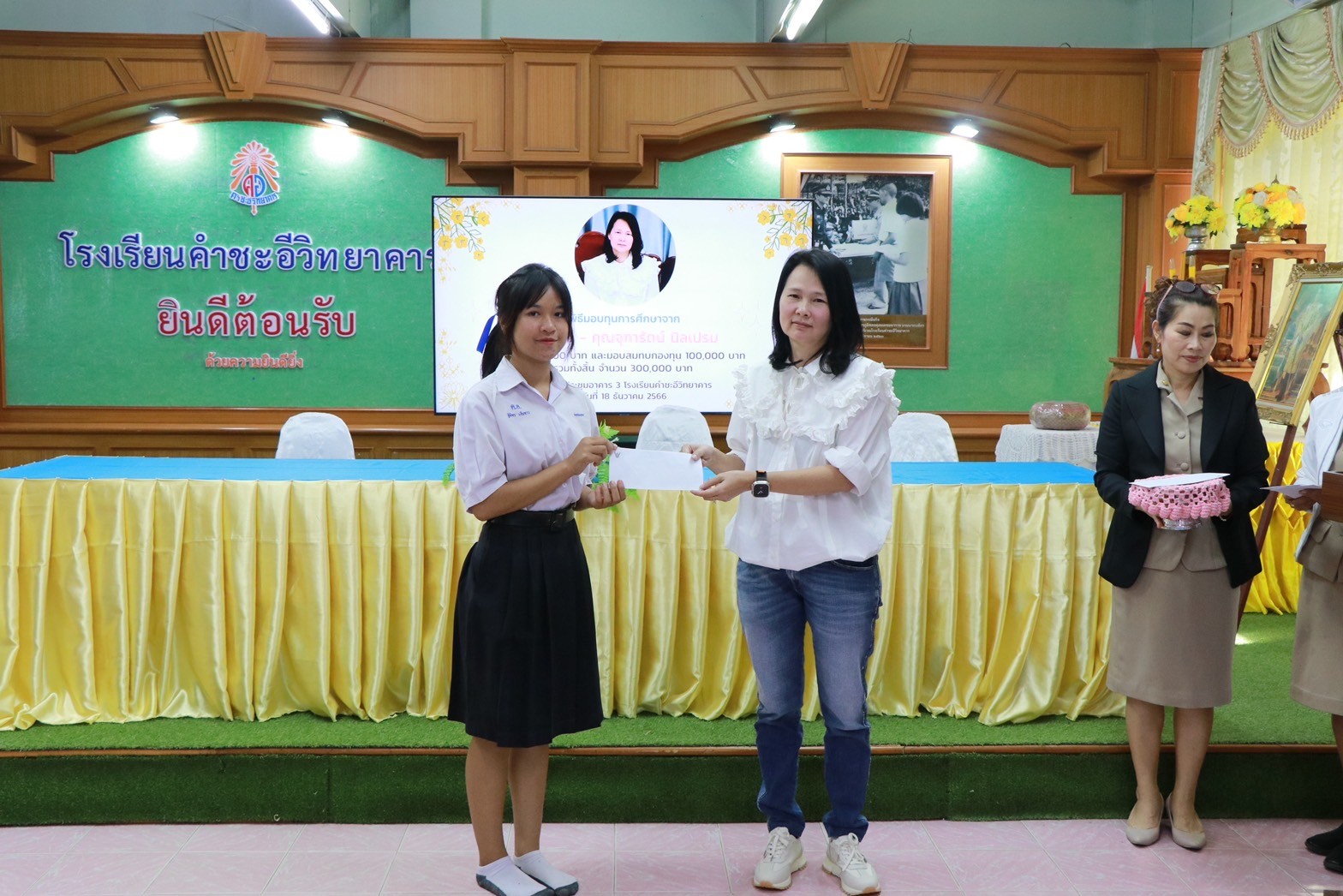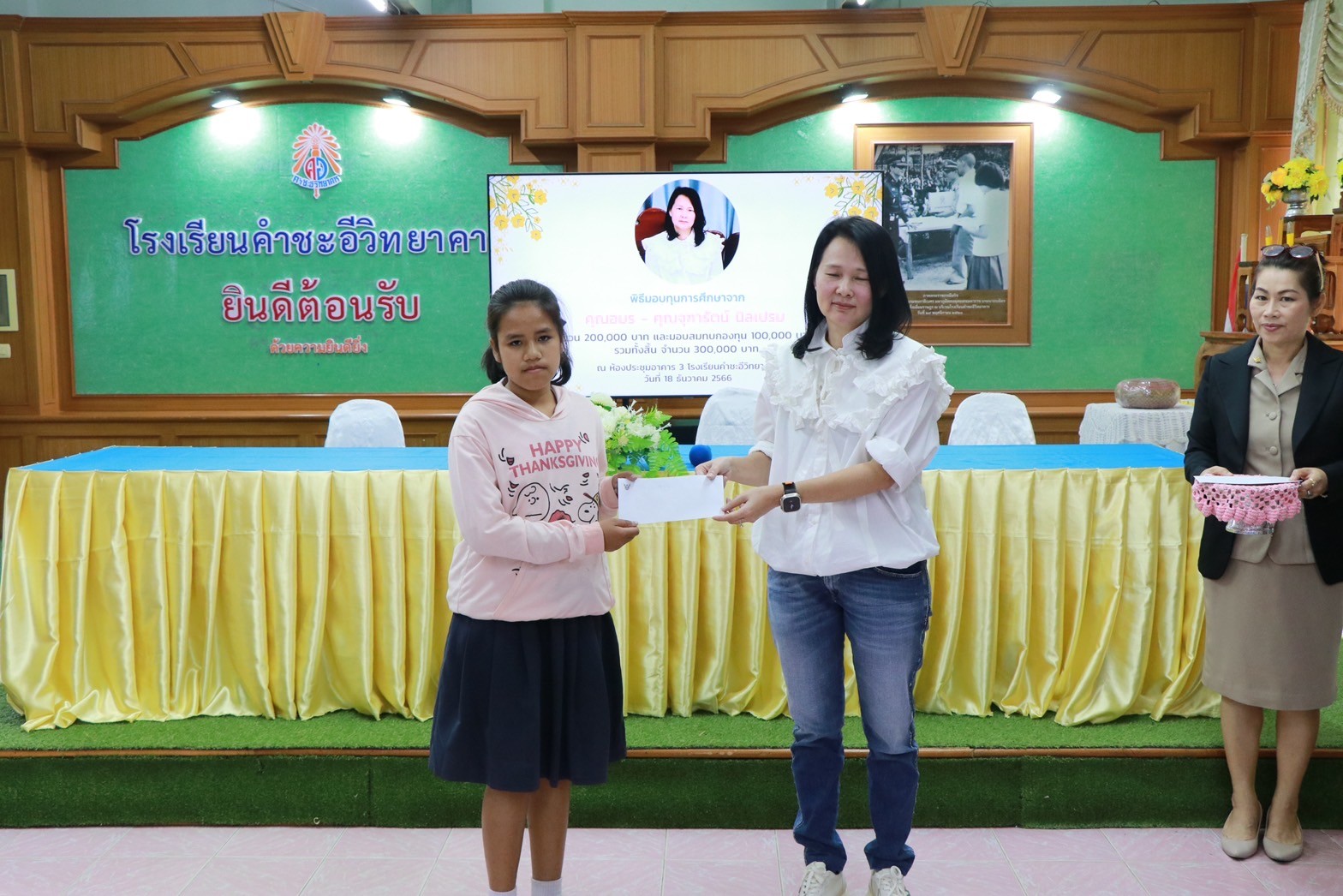 พิธีมอบทุนการศึกษาจาก คุณอมร – คุณจุฑารัตน์ นิลเปรม ให้กับนักเรียนและโรงเรียนคำชะอีวิทยาคาร ณ ห้องประชุมอาคาร ๓ โรงเรียนคำชะอีวิทยาคาร ในวันที่ ๑๘ เดือนธันวาคม พ.ศ. ๒๕๖๖ ทางโรงเรียนขอขอบพระคุณ มา ณ ที่นี้ด้วย