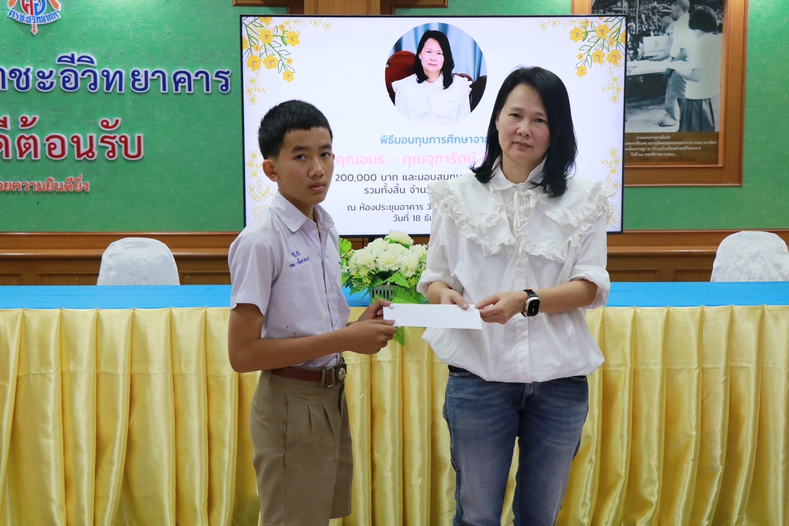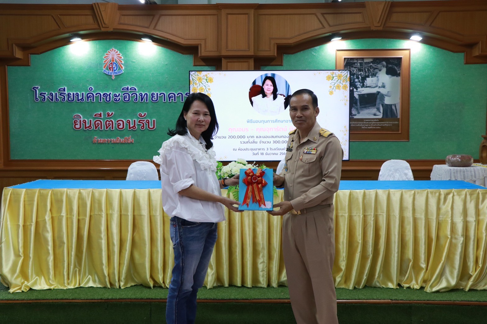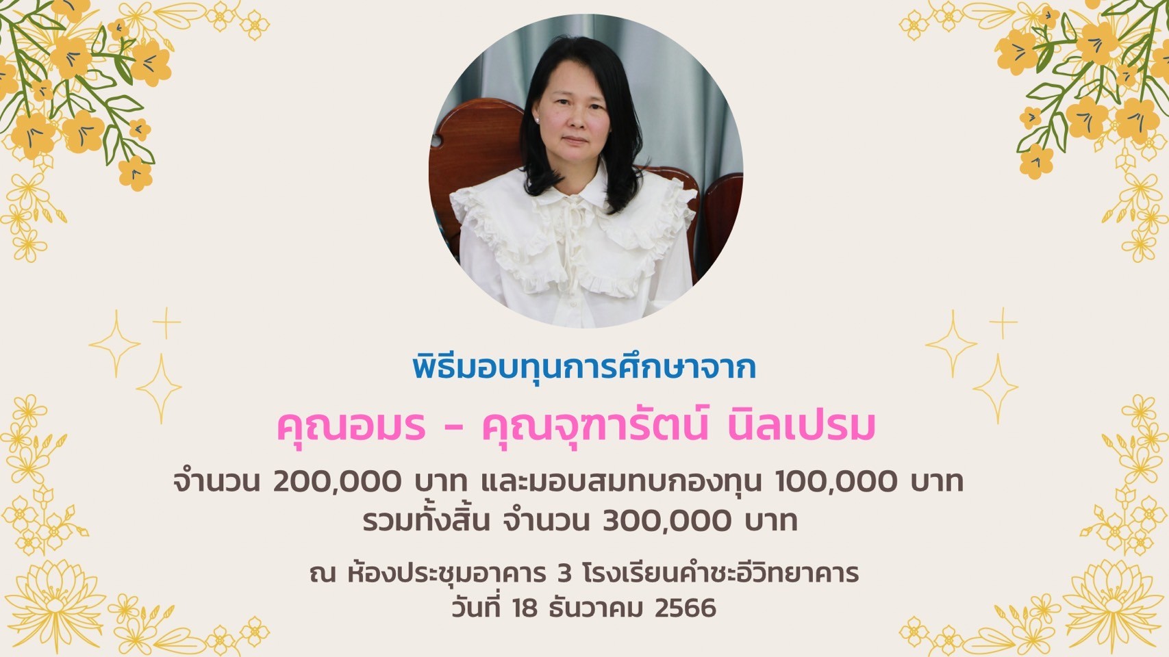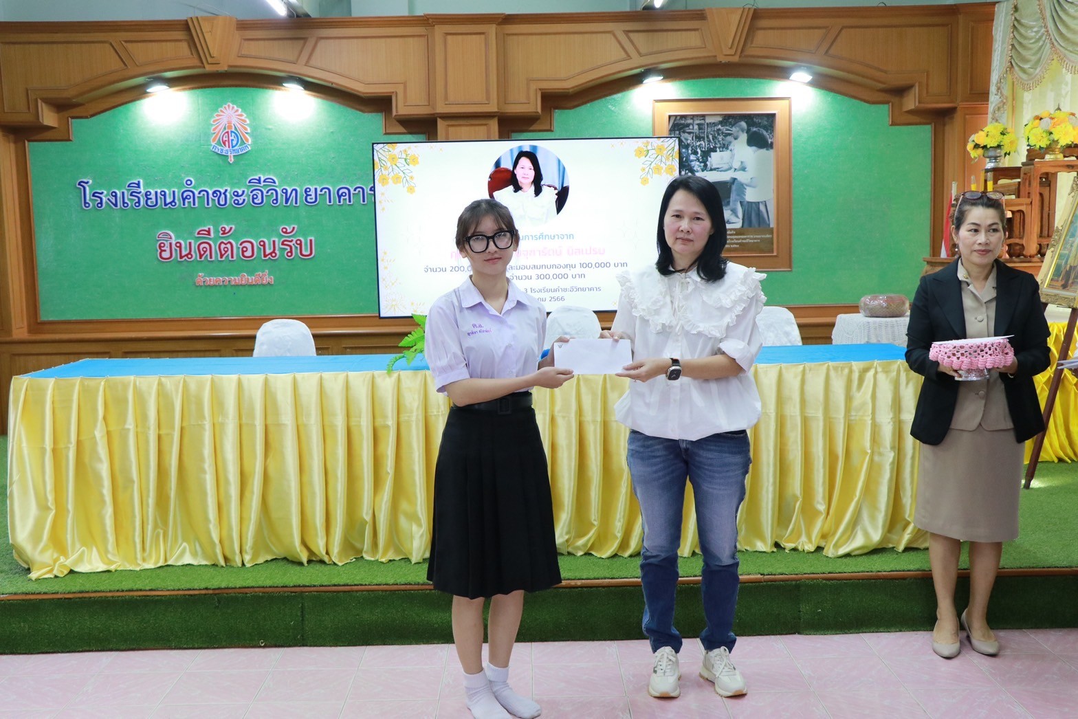 พิธีมอบทุนการศึกษาจาก คุณอมร – คุณจุฑารัตน์ นิลเปรม ให้กับนักเรียนและโรงเรียนคำชะอีวิทยาคาร ณ ห้องประชุมอาคาร ๓ โรงเรียนคำชะอีวิทยาคาร ในวันที่ ๑๘ เดือนธันวาคม พ.ศ. ๒๕๖๖ ทางโรงเรียนขอขอบพระคุณ มา ณ ที่นี้ด้วย
