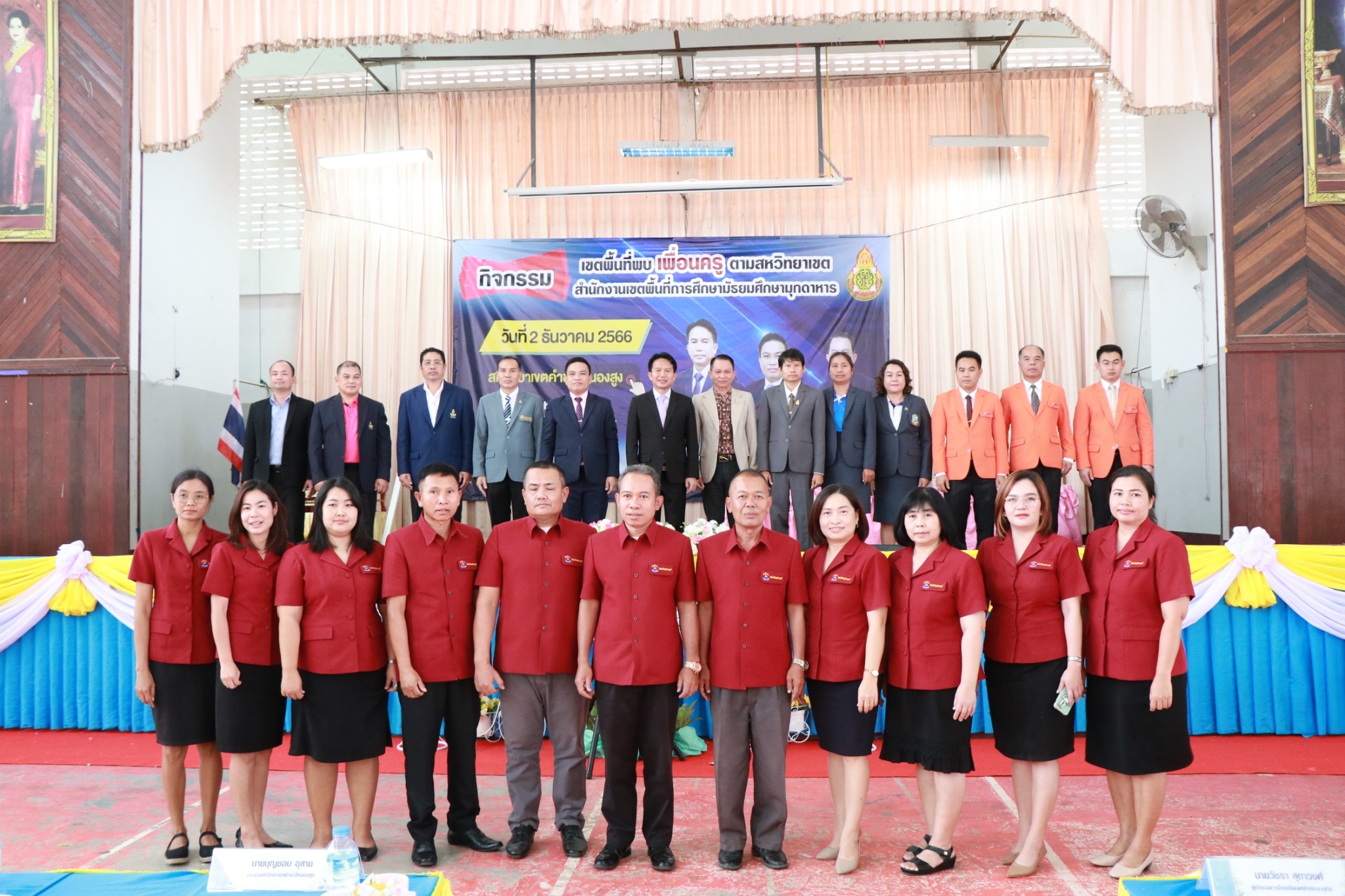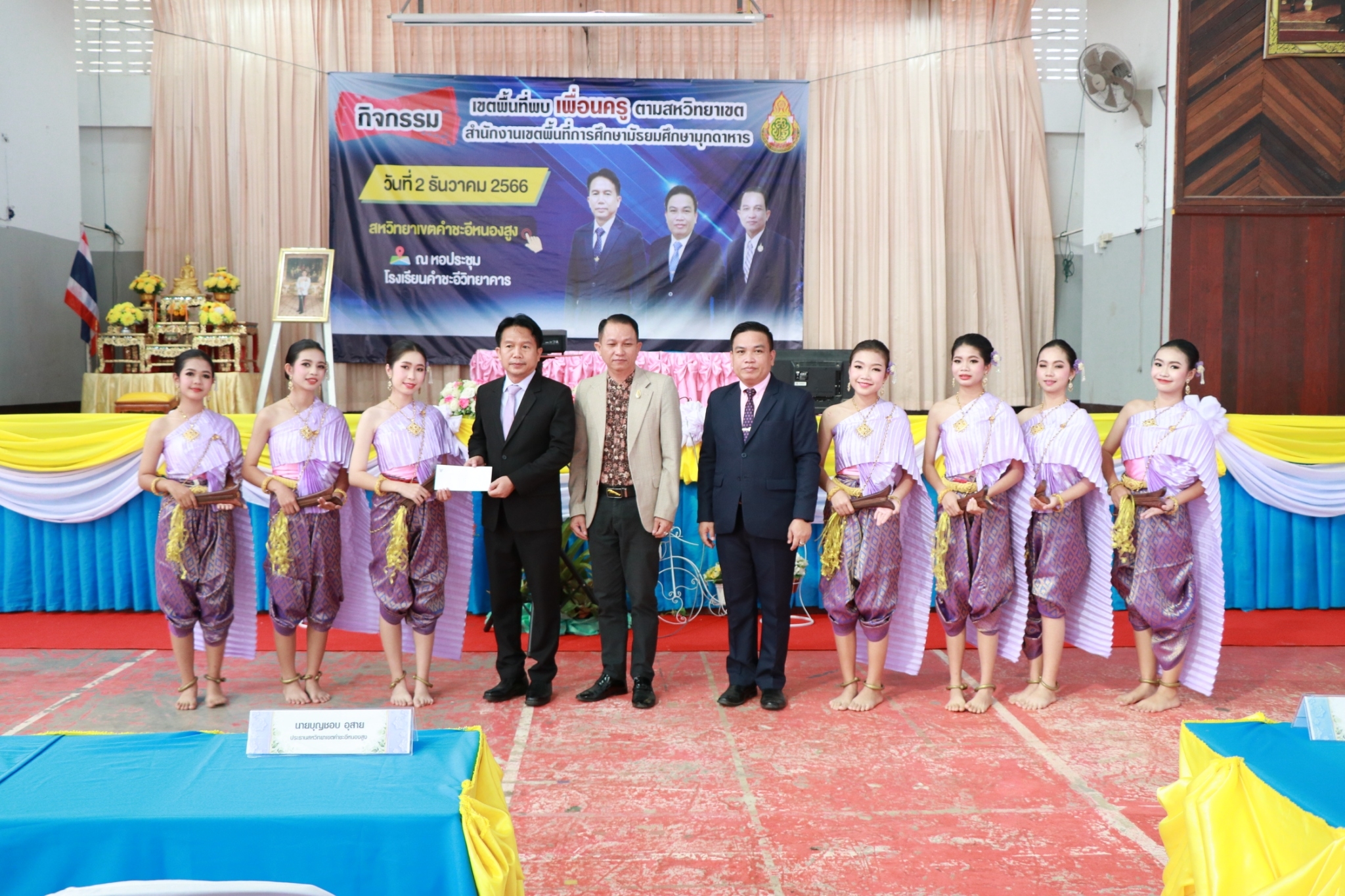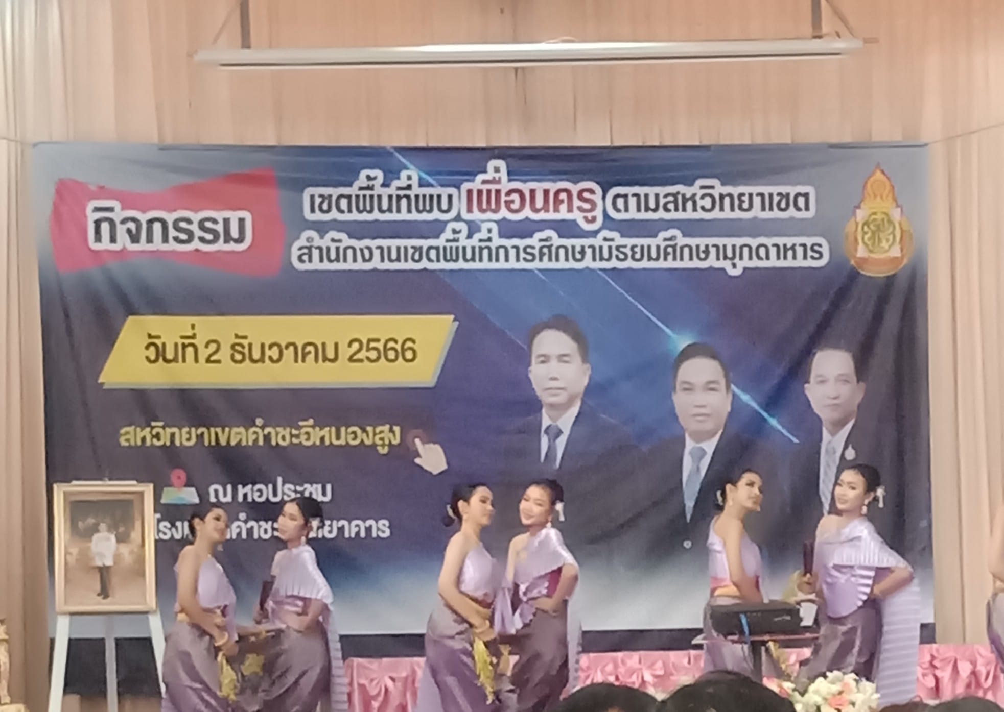 กิจกรรมเขตพื้นที่พบเพื่อนครู สหวิทยาเขต คำชะอีหนองสูง ในวันที่ ๒ ธันวาคม ๒๕๖๖ ณ หอประชุมโรงเรียนคำชะอีวิทยาคาร นำโดย ดร.ฐิตินันท์ นันทะศรี ผอ.สพม.มุกดาหาร และ คณะ