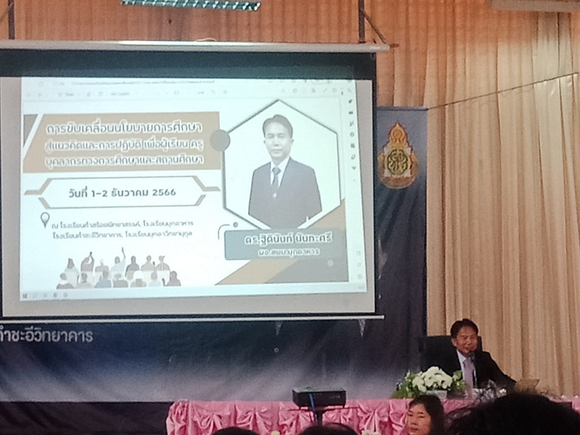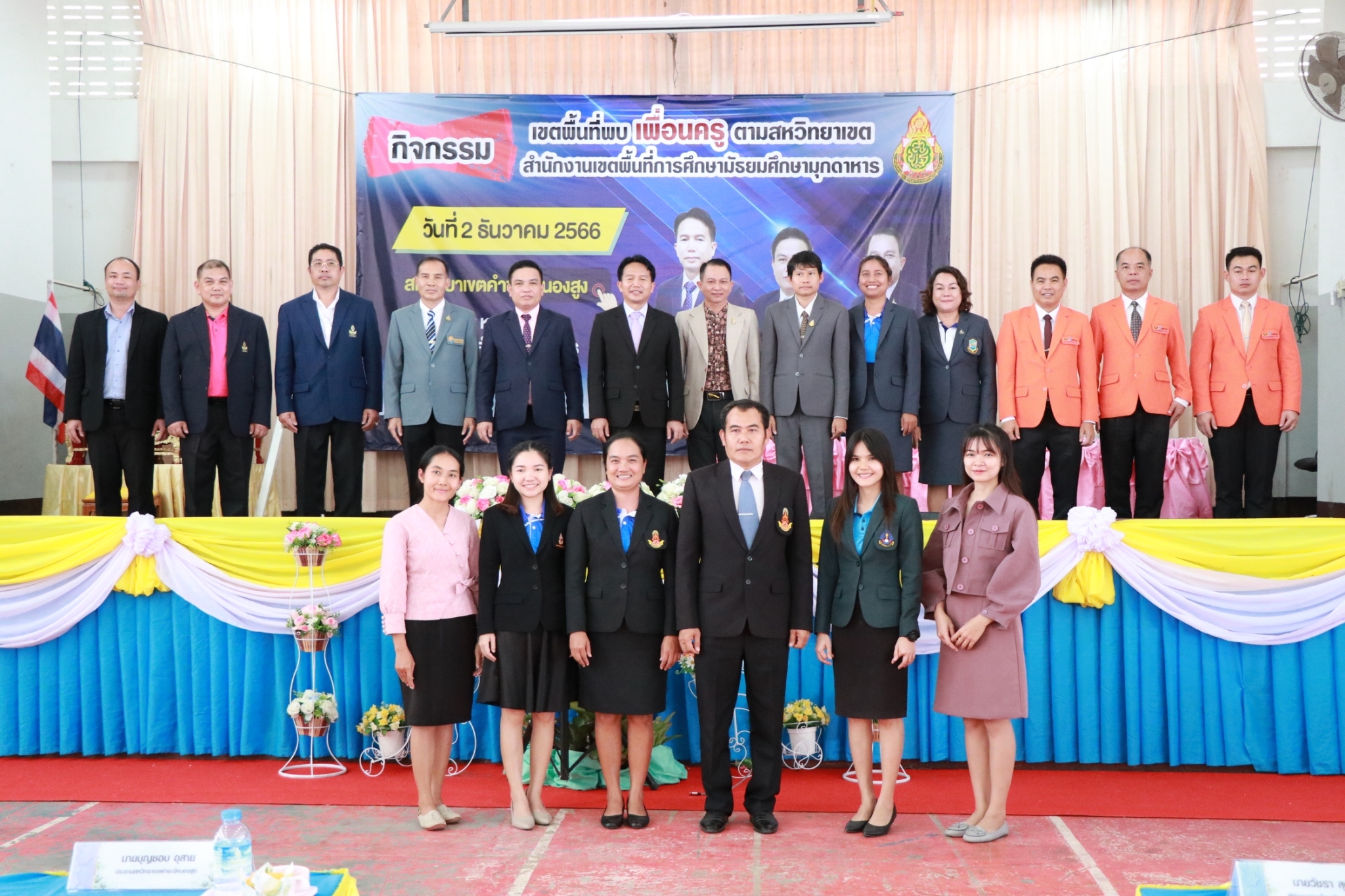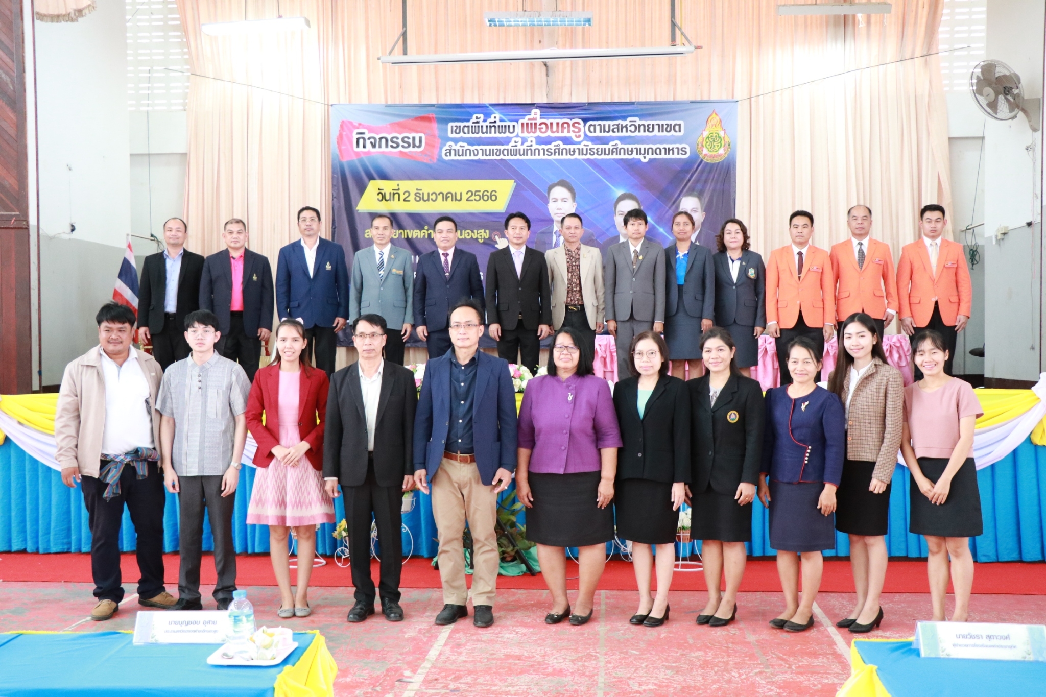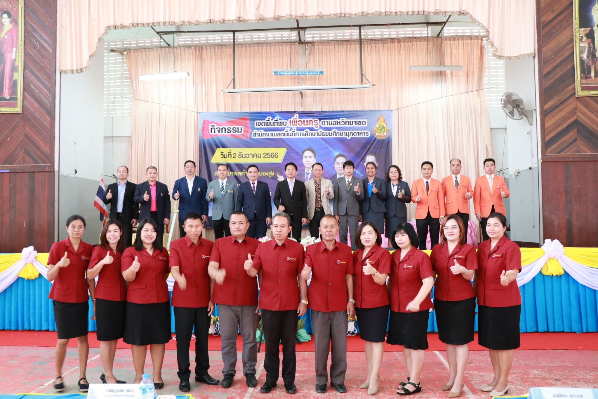 กิจกรรมเขตพื้นที่พบเพื่อนครู สหวิทยาเขต คำชะอีหนองสูง ในวันที่ ๒ ธันวาคม ๒๕๖๖ ณ หอประชุมโรงเรียนคำชะอีวิทยาคาร นำโดย ดร.ฐิตินันท์ นันทะศรี ผอ.สพม.มุกดาหาร และ คณะ
