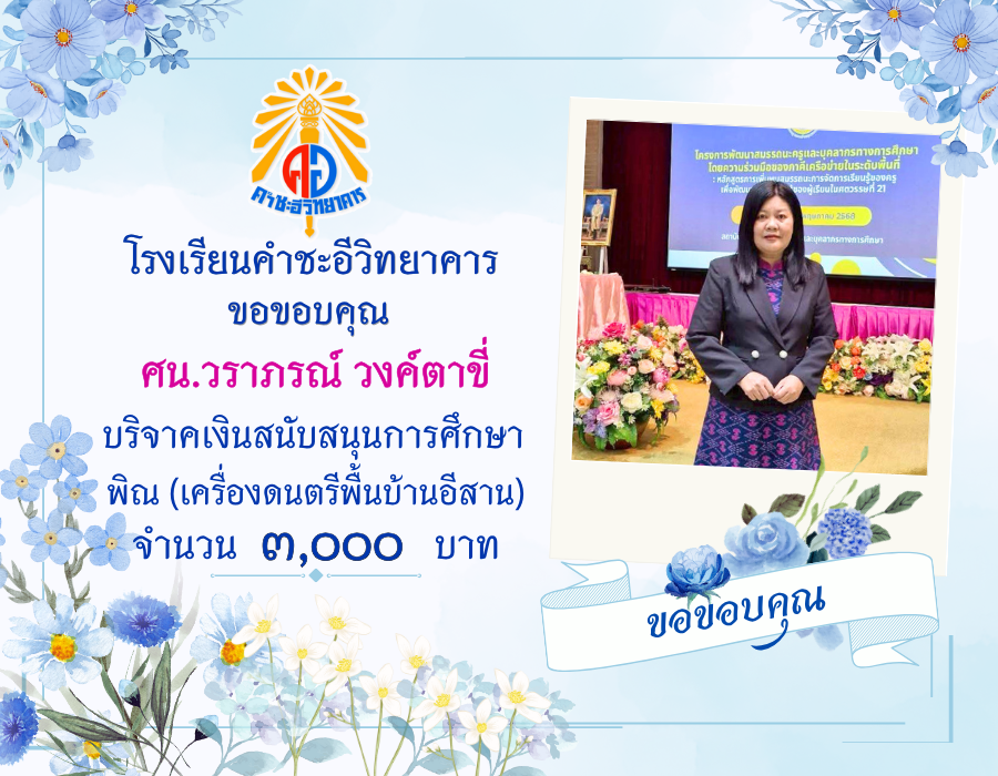ข่าวประชาสัมพันธ์/ประกาศ ขอขอบคุณผู้สนับสนุนการศึกษาของโรงเรียนคำชะอีวิทยาคาร August 11, 2025August 12, 2025 admin 0 Comments ยอดผู้อ่าน 215