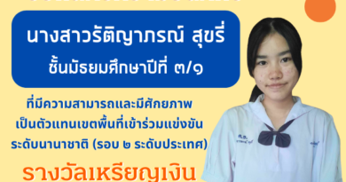 ๑. นางสาวจริยวดี พลวงค์ ม.๓/๑ ๒. นางสาวกมลลักษณ์ บุสภา ม.๓/๑ ๓. เด็กหญิงกัญญาณัฐ รัตนวงค์ ม.๓/๑ ๔. เด็กหญิงปุญญิศา บางศิริ ม.๓/๑