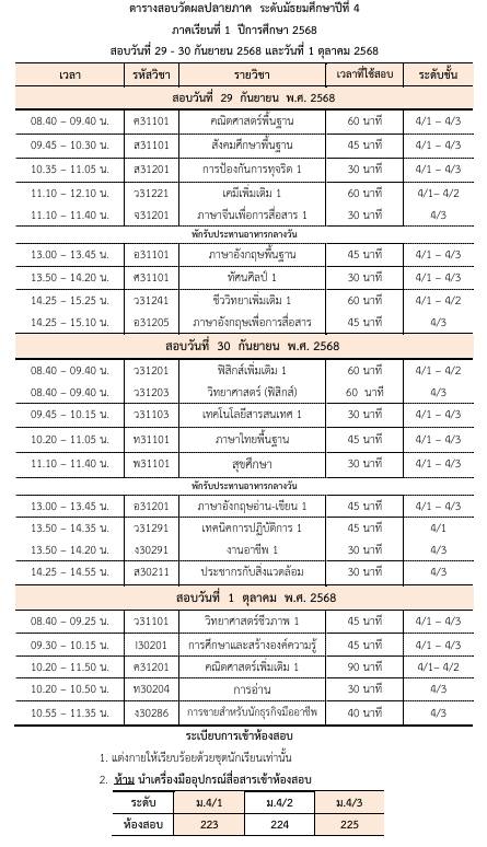 ข่าวประชาสัมพันธ์/ประกาศ มุมนักเรียน ตารางสอบวัดผลปลายภาคเรียนที่ ๑ ปีการศึกษา ๒๕๖๘ September 16, 2025September 16, 2025 admin 0 Comments ยอดผู้อ่าน 442