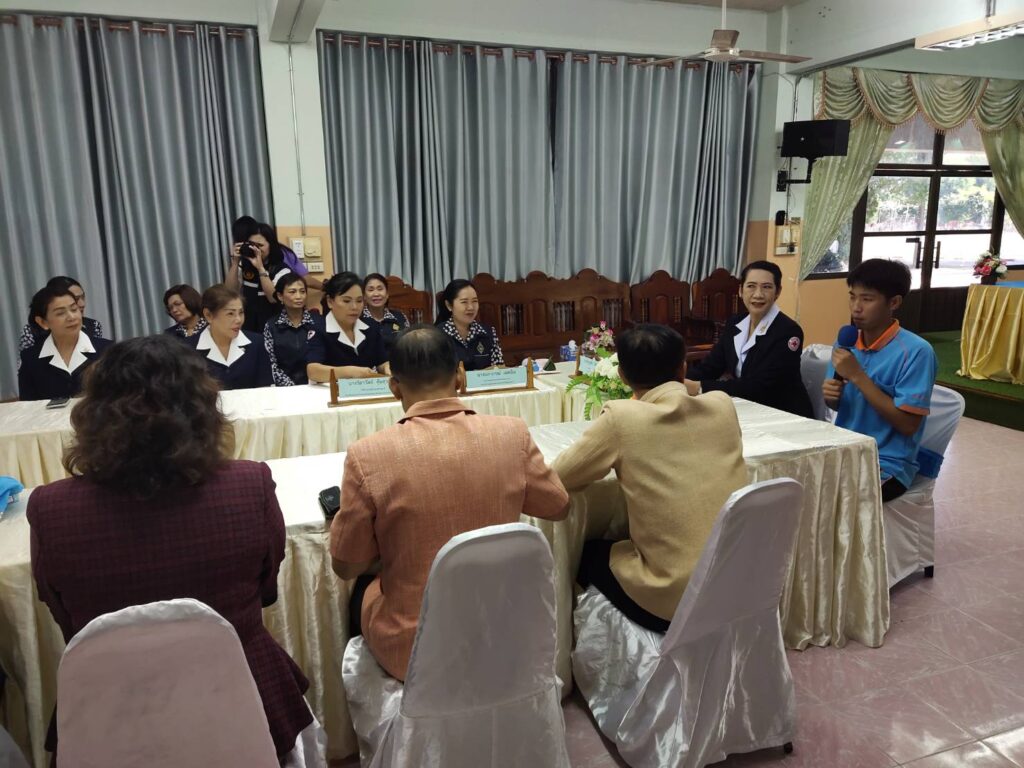 นายกเหล่ากาชาดจังกวัดมุกดาหาร/ประธานแม่บ้านมหาดไทย พร้อมด้วยนายอำเภอคำชะอี และสมาชิกเหล่ากาชาดจังหวัดมุกดาหาร ออกเยี่ยมนักเรียนทุนมูลนิธิร่วมจิตน้อมเกล้าในพระบรมราชินูปถ้มภ์ นายวรชิต คล่องดี ม.5/1 ณ ห้องประชุมโรงเรียนคำชะอีวิทยาคาร