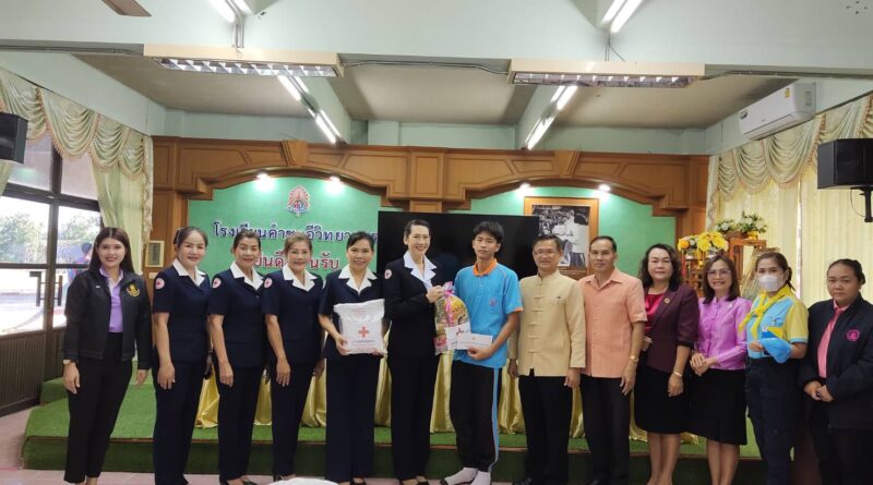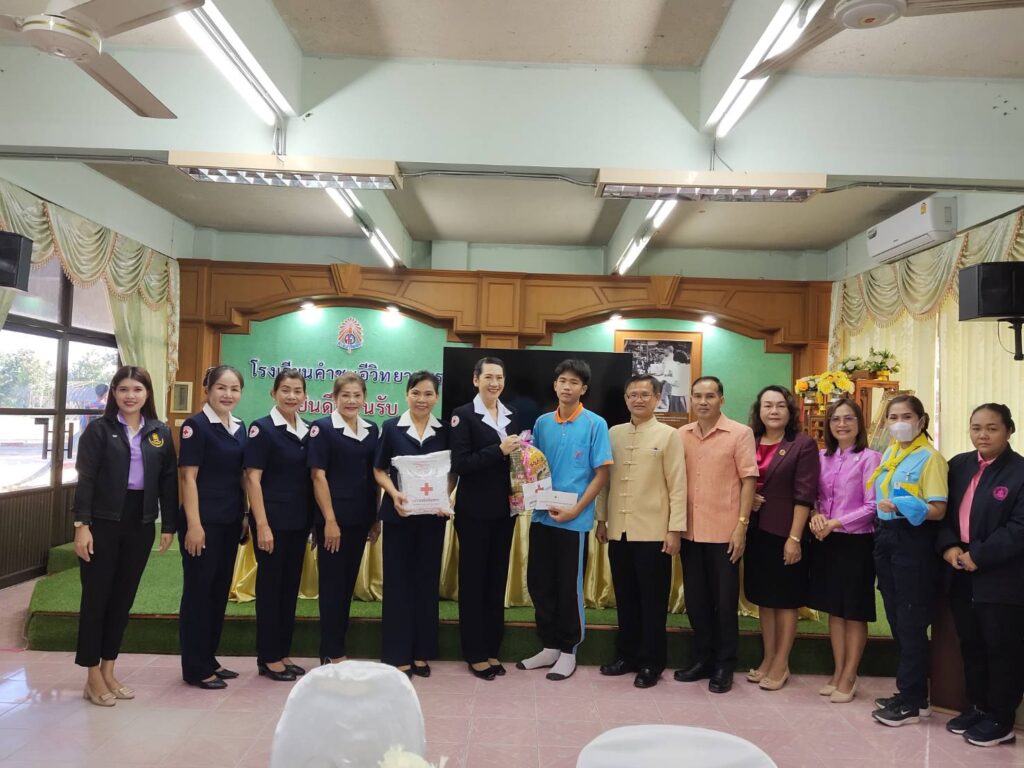 นายกเหล่ากาชาดจังกวัดมุกดาหาร/ประธานแม่บ้านมหาดไทย พร้อมด้วยนายอำเภอคำชะอี และสมาชิกเหล่ากาชาด ออกเยี่ยมนักเรียนทุนมูลนิธิร่วมจิตน้อมเกล้าในพระบรมราชินูปถ้มภ์