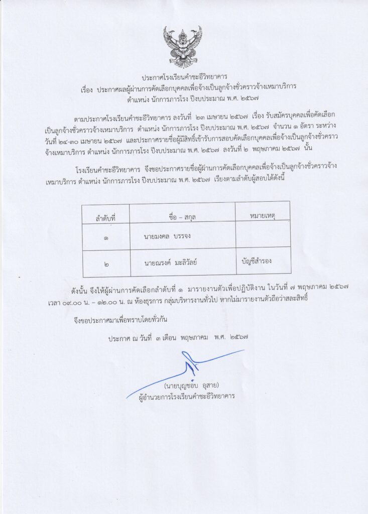ข่าวประชาสัมพันธ์/ประกาศ ประกาศผลผู้ผ่านการคัดเลือกบุคคลเพื่อจ้างเป็นลูกจ้างชั่วคราวจ้างเหมาบริการ ตำแหน่ง นักการภารโรง ปีงบประมาณ ๒๕๖๗ May 3, 2024May 3, 2024 admin 0 Comments ยอดผู้อ่าน 279