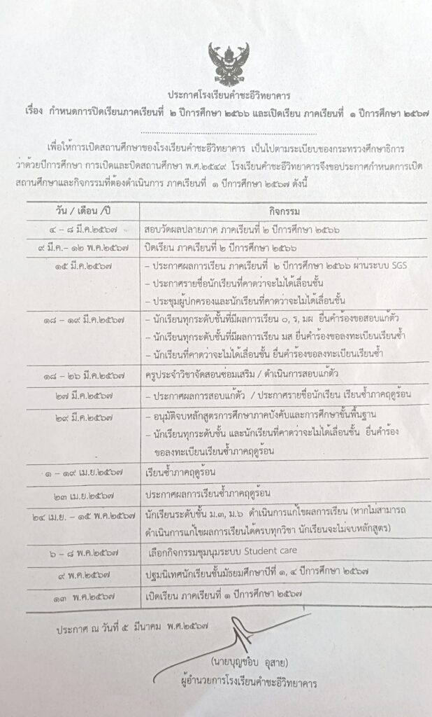 ข่าวประชาสัมพันธ์/ประกาศ ประกาศโรงเรียนคำชะอีวิทยาคาร เรื่อง กำหนดการปิดเรียนภาคเรียนที่ ๒ ปีการศึกษา ๒๕๖๖ และเปิดเรียนภาคเรียนที่ ๑ ปีการศึกษา ๒๕๖๗ March 20, 2024March 20, 2024 admin 0 Comments ยอดผู้อ่าน 398
