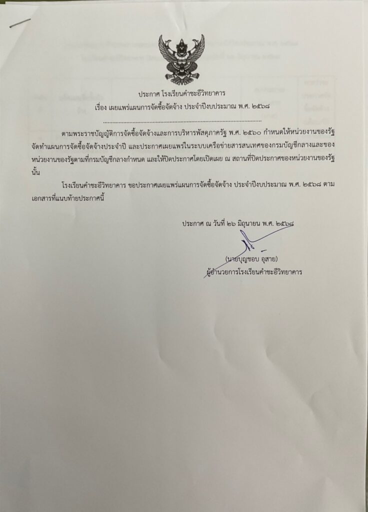 ข่าวประชาสัมพันธ์/ประกาศ ประกาศโรงเรียนคำชะอีวิทยาคาร เรื่อง เผยแพร่แผนการจัดซื้อจัดจ้าง ประจำปีงบประมาณ ๒๕๖๘ June 27, 2025June 27, 2025 admin 0 Comments ยอดผู้อ่าน 230