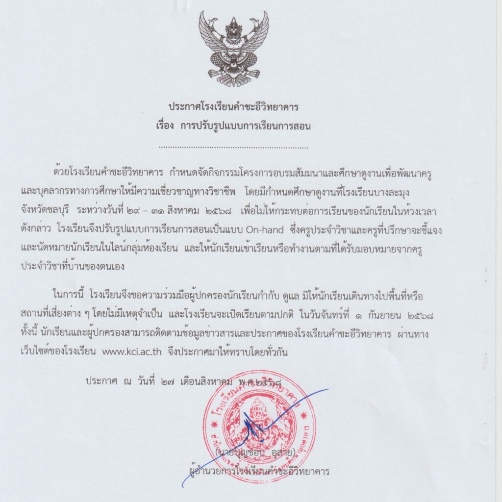 ข่าวประชาสัมพันธ์/ประกาศ ประกาศ เรื่อง การปรับรูปแบบการเรียนการสอน August 28, 2025August 28, 2025 admin 0 Comments ยอดผู้อ่าน 133