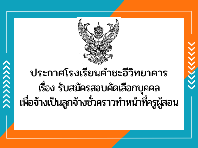 ประกาศ เรื่อง รับสมัครสอบคัดเลือกบุคคลเพื่อจ้างเป็นลูกจ้างชั่วคราวทำหน้าที่ครูผู้สอน สาขาวิชาเอก ภาษาอังกฤษ จำนวน ๑ อัตรา