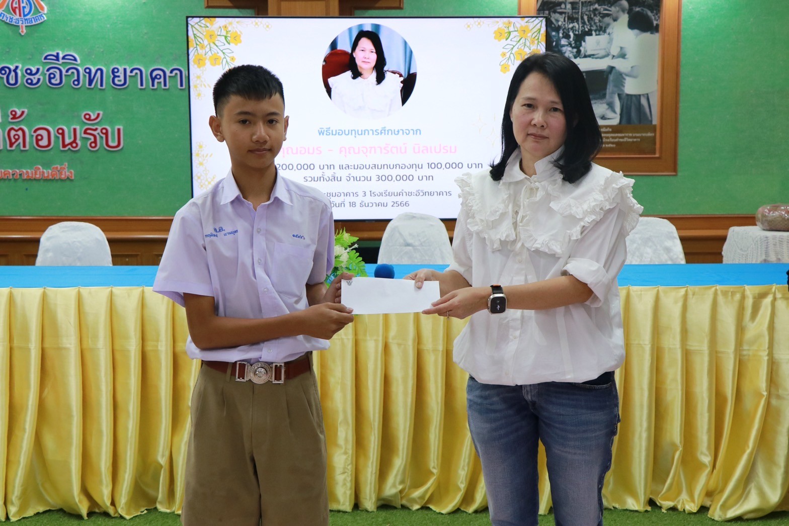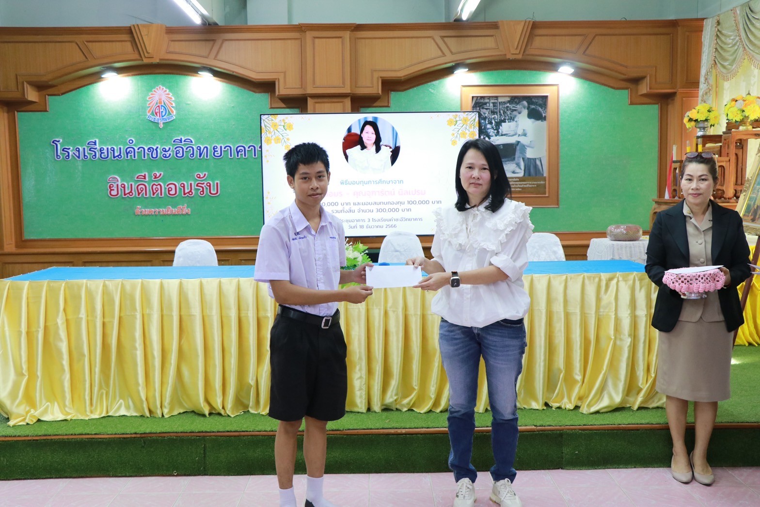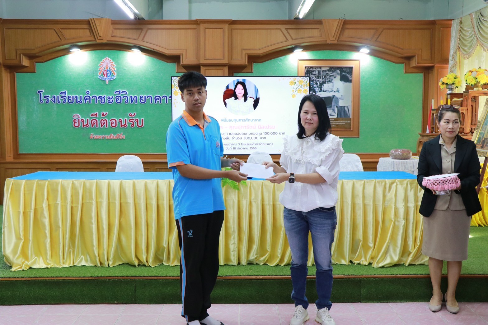 พิธีมอบทุนการศึกษาจาก คุณอมร – คุณจุฑารัตน์ นิลเปรม ให้กับนักเรียนและโรงเรียนคำชะอีวิทยาคาร ณ ห้องประชุมอาคาร ๓ โรงเรียนคำชะอีวิทยาคาร ในวันที่ ๑๘ เดือนธันวาคม พ.ศ. ๒๕๖๖ ทางโรงเรียนขอขอบพระคุณ มา ณ ที่นี้ด้วย