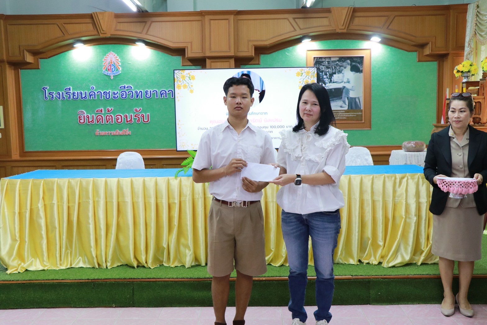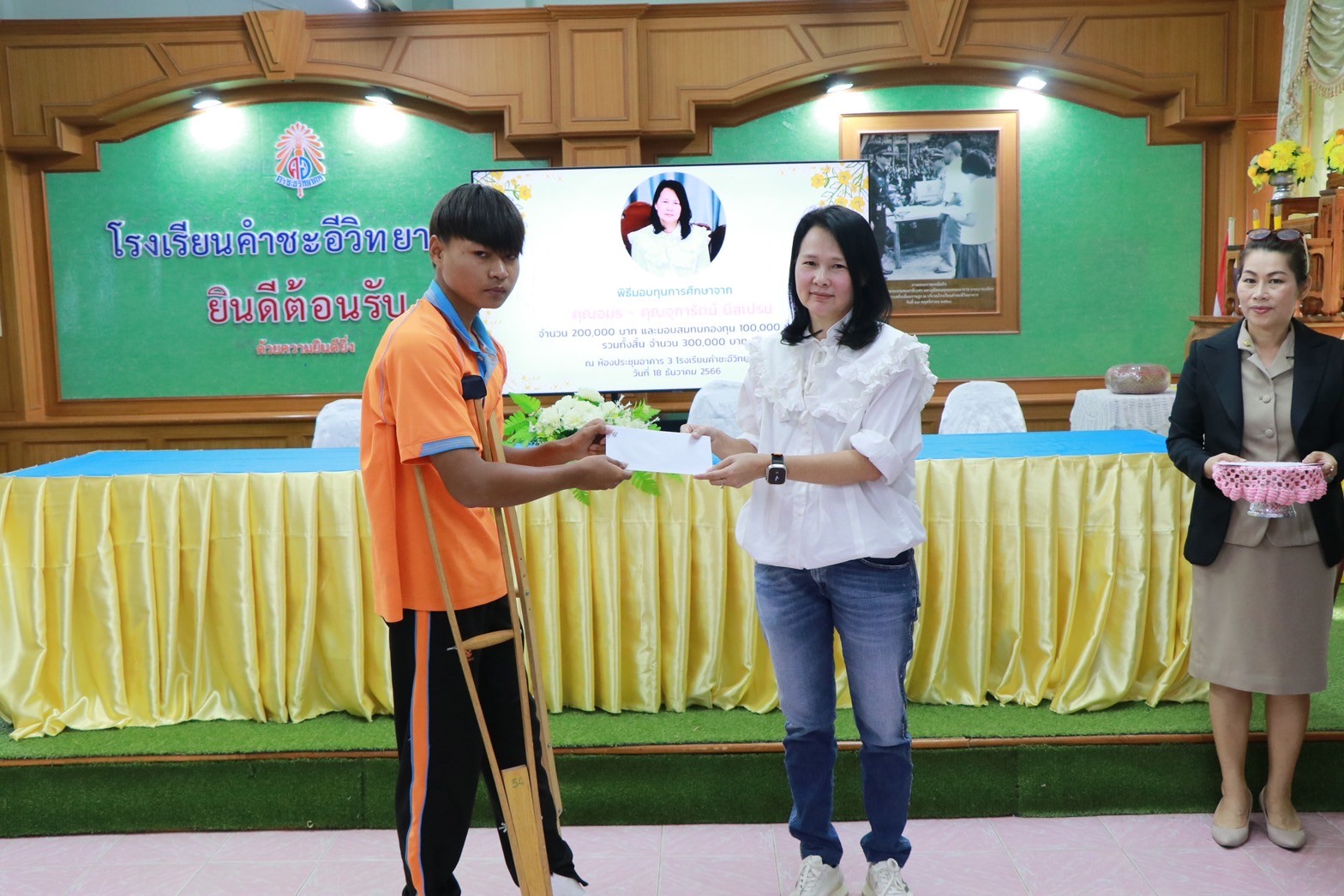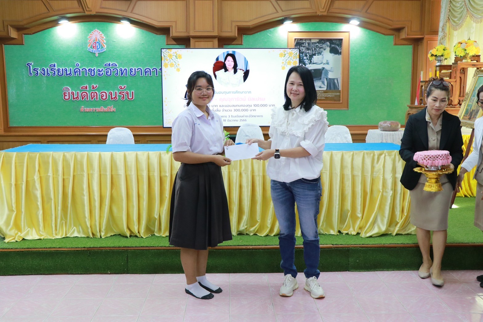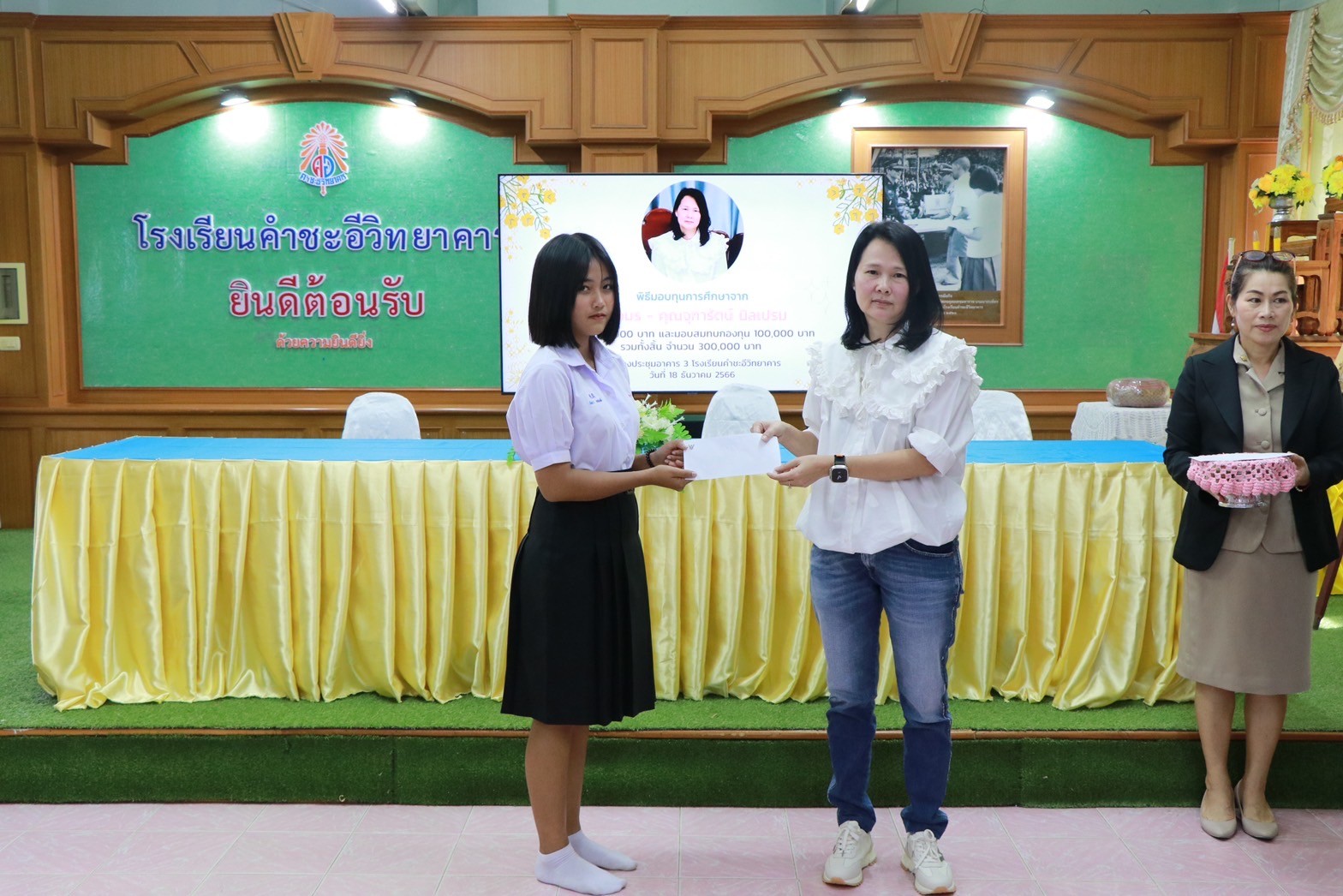 พิธีมอบทุนการศึกษาจาก คุณอมร – คุณจุฑารัตน์ นิลเปรม ให้กับนักเรียนและโรงเรียนคำชะอีวิทยาคาร ณ ห้องประชุมอาคาร ๓ โรงเรียนคำชะอีวิทยาคาร ในวันที่ ๑๘ เดือนธันวาคม พ.ศ. ๒๕๖๖ ทางโรงเรียนขอขอบพระคุณ มา ณ ที่นี้ด้วย