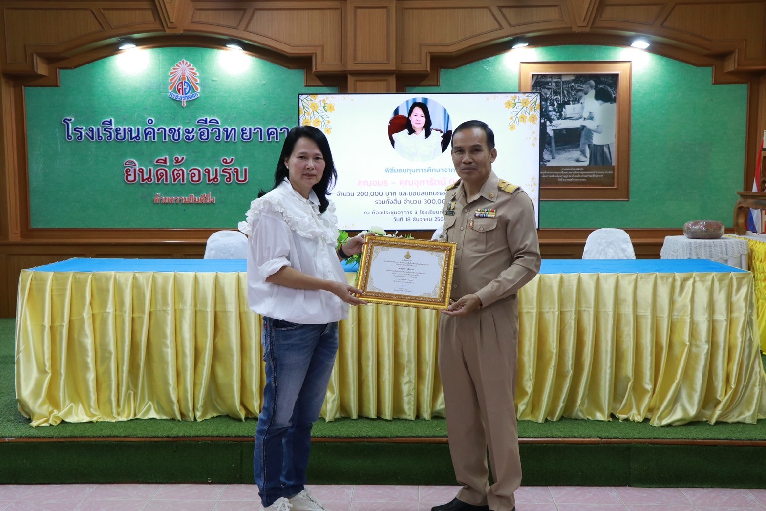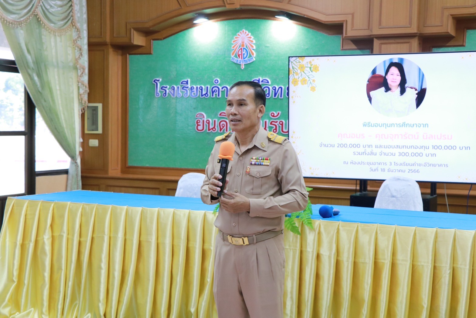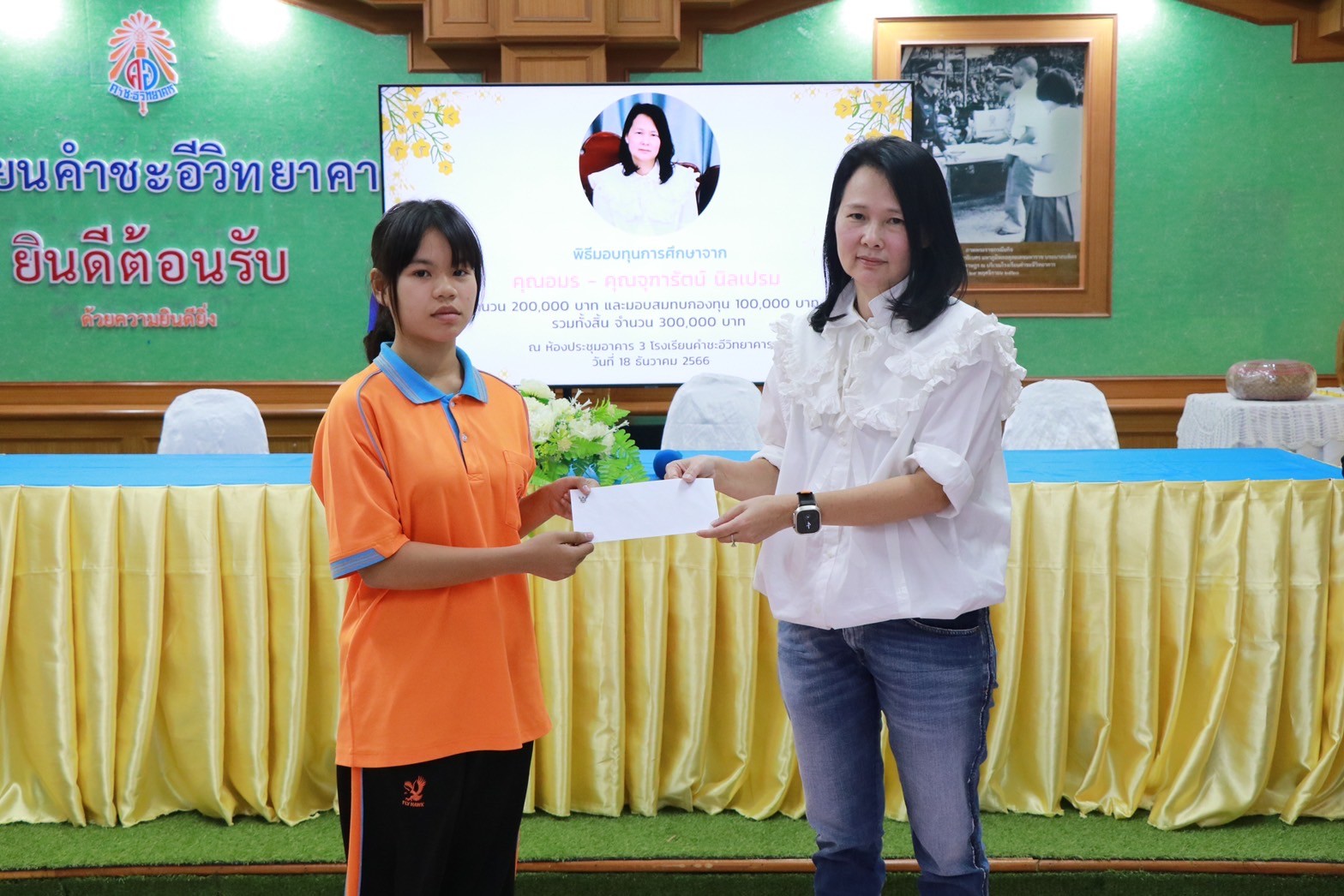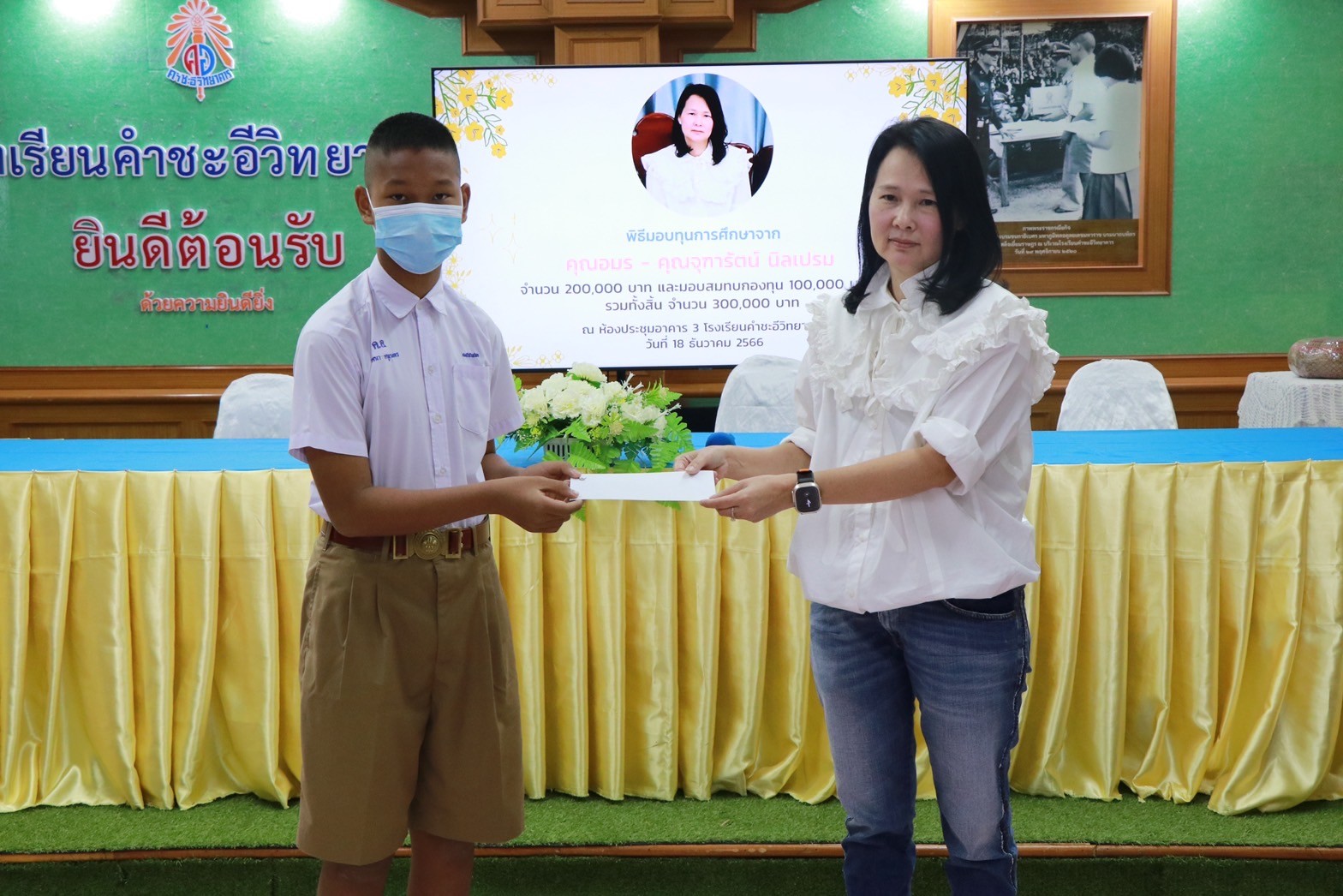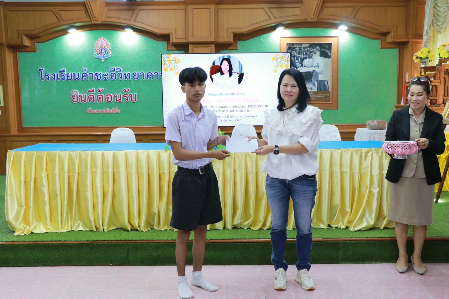 พิธีมอบทุนการศึกษาจาก คุณอมร – คุณจุฑารัตน์ นิลเปรม ให้กับนักเรียนและโรงเรียนคำชะอีวิทยาคาร ณ ห้องประชุมอาคาร ๓ โรงเรียนคำชะอีวิทยาคาร ในวันที่ ๑๘ เดือนธันวาคม พ.ศ. ๒๕๖๖ ทางโรงเรียนขอขอบพระคุณ มา ณ ที่นี้ด้วย