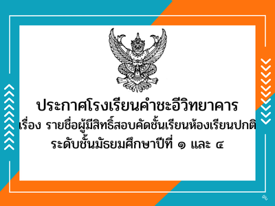 ข่าวประชาสัมพันธ์/ประกาศ รายชื่อผู้มีสิทธิ์สอบคัดชั้นเรียนห้องเรียนปกติ ม.๑ และ ม.๔ ปีการศึกษา ๒๕๖๘ March 26, 2025March 26, 2025 admin 0 Comments ยอดผู้อ่าน 411