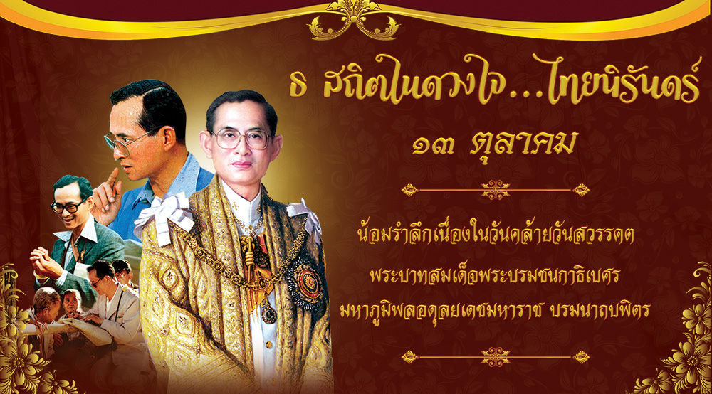 ๑๓ ตุลาคม น้อมรำลึกเนื่องในวันคล้ายวันสวรรคต พระบาทสมเด็จพระบรมชนกาธิเบศร มหาภูมิพลอดุลยเดชมหาราช บรมนาถบพิตร