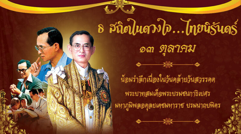 ๑๓ ตุลาคม น้อมรำลึกเนื่องในวันคล้ายวันสวรรคต พระบาทสมเด็จพระบรมชนกาธิเบศร มหาภูมิพลอดุลยเดชมหาราช บรมนาถบพิตร