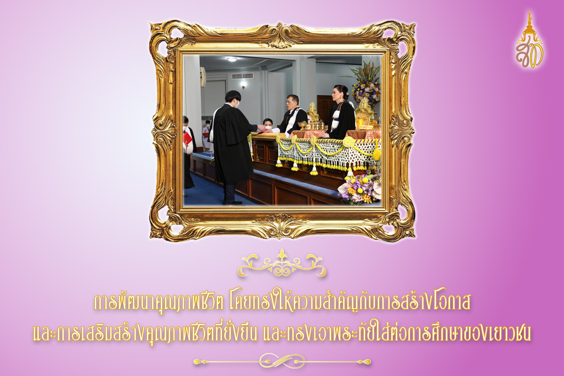 - การพัฒนาคุณภาพชีวิต โดยทรงให้ความสำคัญกับการสร้างโอกาส เช่น การพัฒนาทักษะอาชีพ การอบรมคุณธรรมจริยธรรม และการเสริมสร้างคุณภาพชีวิตที่ยั่งยืน และทรงเอาพระทัยใจต่อการศึกษาของเยาวชนเพื่อให้เยาวชนไทยเติบโตเป็นทรัพยากรบุคคลที่มีคุณภาพของประเทศ