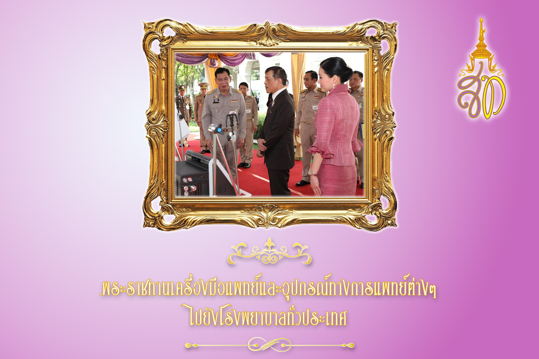 - การพระราชทานเครื่องมือแพทย์และอุปกรณ์ทางการแพทย์ต่างๆ ไปยังโรงพยาบาลทั่วประเทศ เพื่อบรรเทาปัญหาด้านสาธารณสุช เช่น ในช่วงสถานการณ์โควิด-19 และทรงจัดถุงพระราชทานกำลังใจแก่โรงพยาบาลแม่ข่ายและโรงพยาบาลสนาม เพื่อเป็นกำลังใจแก่เจ้าหน้าที่สาธารณสุข