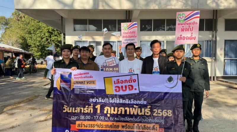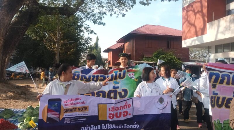 นายวิชิต บุรัตน์ รองผู้อำนวยการ พร้อมด้วยคณะครู และนักเรียนร่วมเดินรณรงค์การใช้สิทธิ์เลือกตั้งนายกและสมาชิกสภา