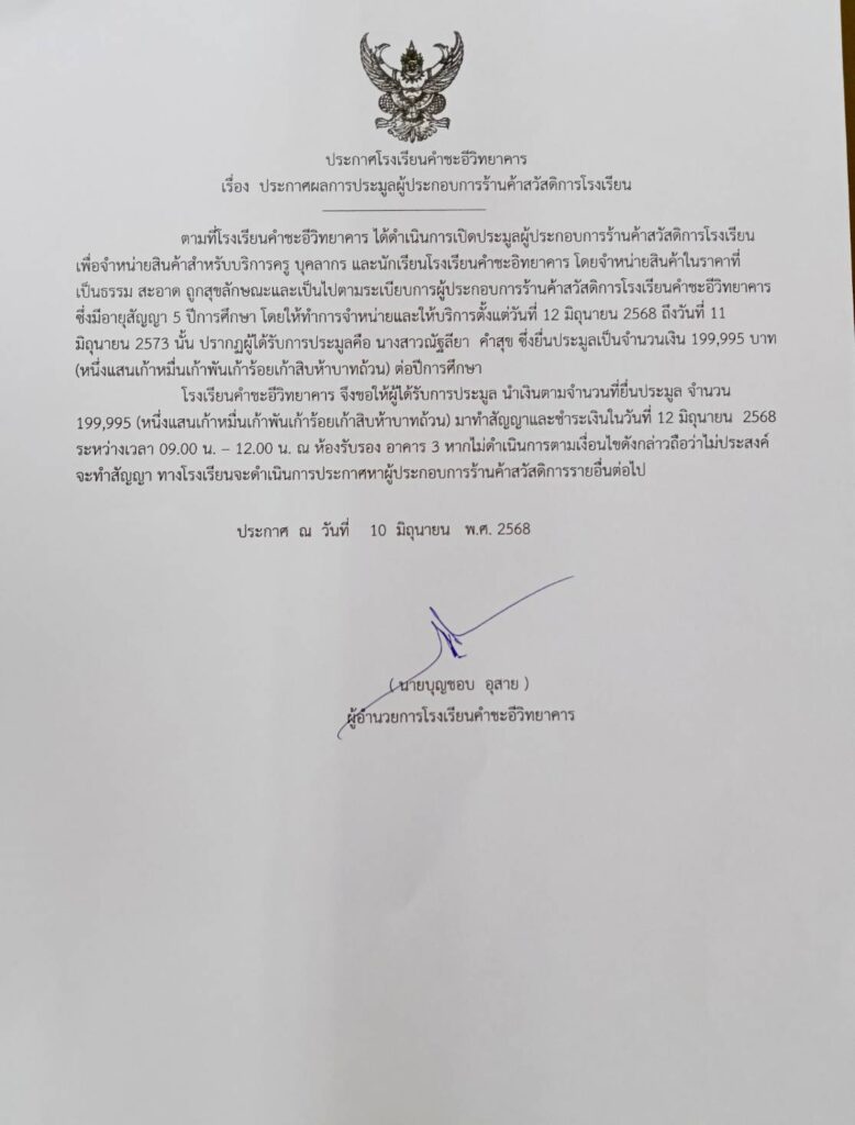 ข่าวประชาสัมพันธ์/ประกาศ ประกาศ เรื่อง ผลการประมูลผู้ประกอบการร้านค้าสวัสดิการโรงเรียนคำชะอีวิทยาคาร June 10, 2025June 10, 2025 admin 0 Comments ยอดผู้อ่าน 240