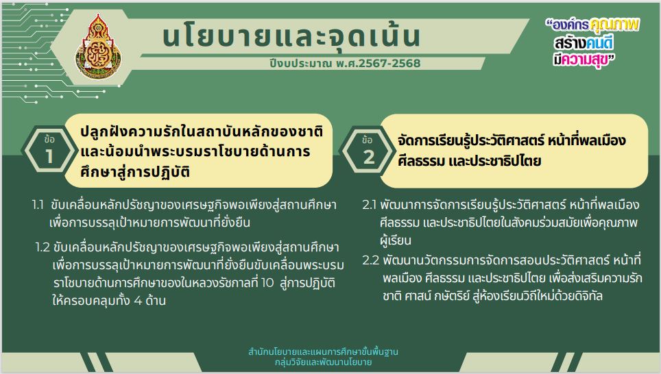 นโยบาย สพฐ. วิสัยทัศน์ นโยบายและจุดเน้น quick Win December 3, 2023December 3, 2023 admin 0 Comments ยอดผู้อ่าน 2,340 นโยบาย-จุดเน้น-67-68-และ-Quick-Win-67-2.11.66Download