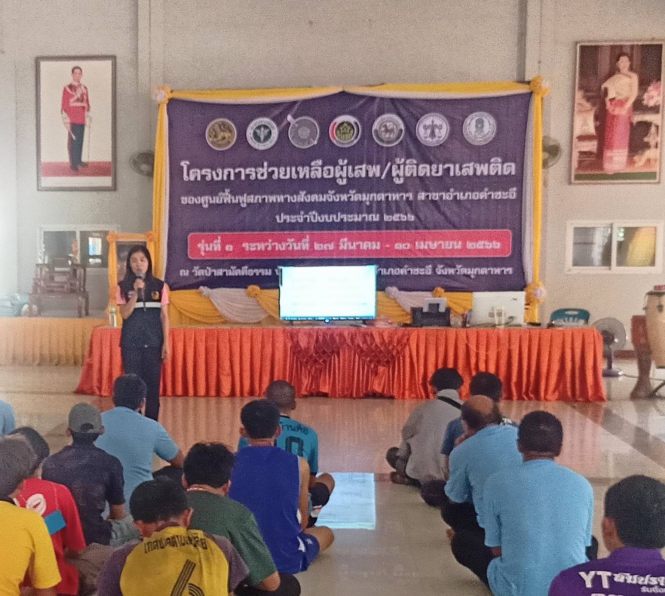 ชมรม TO BE NUMBER ONE ร่วมเป็นวิทยากรและพี่เลี้ยงในการอบรมโครงการช่วยเหลือผู้เสพ/ผู้ติดยาเสพติดของศูนย์ฟื้นฟูสภาพทางสังคมจังหวัดมุกดาหาร สาขาอำเภอคำชะอี ประจำปี 2566 ระหว่าง วันที่ 27 มี.ค.-10 เม.ย. ณ วัดป่าสามัคคีธรรม บ้านซ่ง อำเภอคำชะอี จังหวัดมุกดาหาร