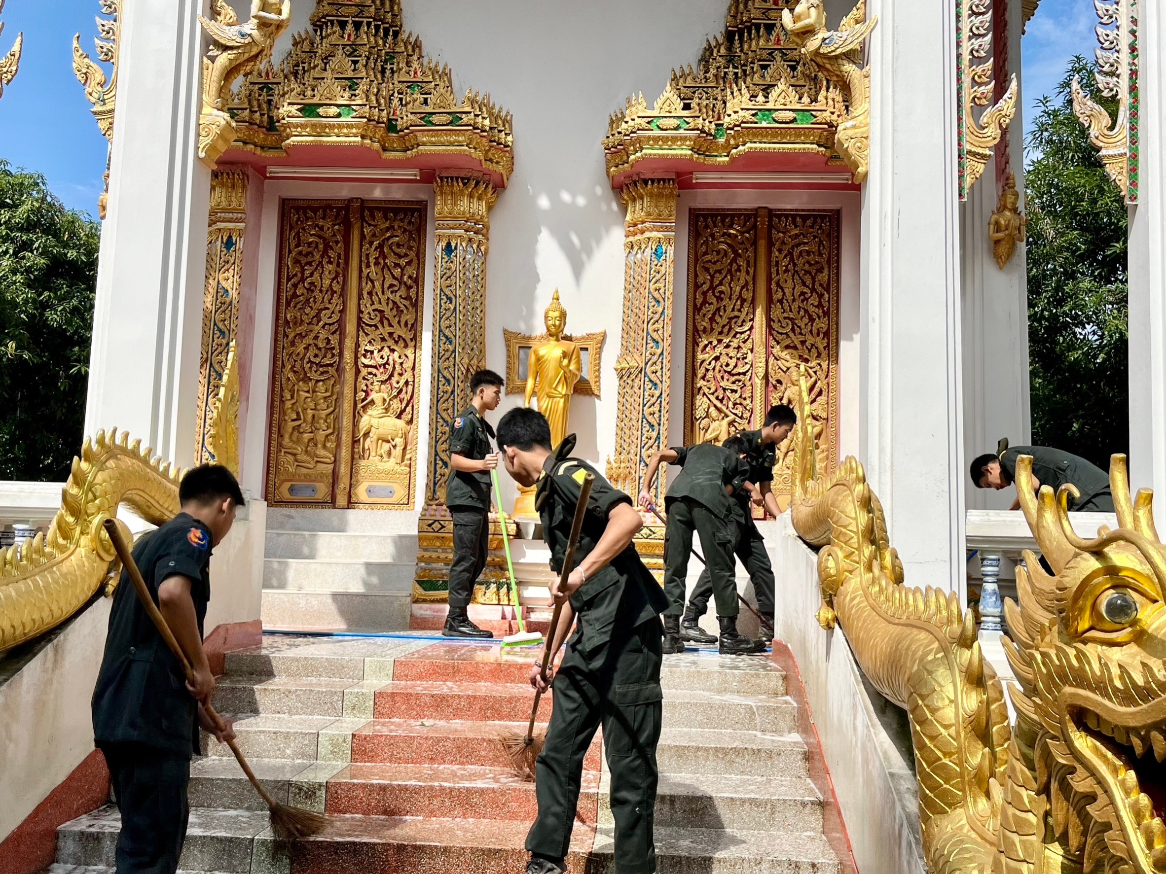 นักศึกษาวิชาทหารโรงเรียนคำชะอีวิทยาคาร ทำกิจกรรม “รด.จิตอาสา 3 แสนนาย ทำความดี ด้วยหัวใจ” ถวายเป็นพระราชกุศล เนื่องในวันนวมินทรมหาราช ในโอกาสวันคล้ายวันสวรรคตพระบาทสมเด็จพระบรมชนกาธิเบศร มหาภูมิพลอดุลยเดชมหาราช บรมนาถบพิตร 13 ตุลาคม 2566 โดยบำเพ็ญประโยชน์ พัฒนาอาคารสถานที่ กวาดอุโบสถ ศาลาการเปรียญ เก็บใบไม้ ขยะ ล้างห้องน้ำ ฯลฯ ณ วัดพุทธนคราภิบาล