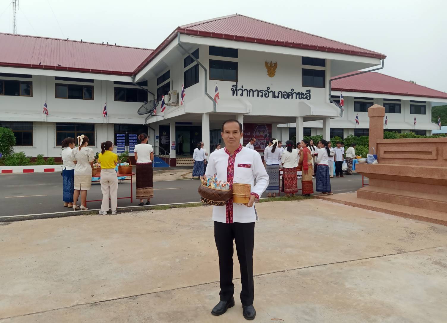 นายบุญชอบ อุสาย ผู้อำนวยการโรงเรียนคำชะอีวิทยาคาร ร่วมทำบุญตักบาตรพระสงฆ์ เนื่องในวันครบรอบ ๖๙ ปี ของการตั้งอำเภอคำชะอี วันที่ ๕ มิถุนายน ๒๕๖๘ ณ ที่ว่าการอำเภอคำชะอี