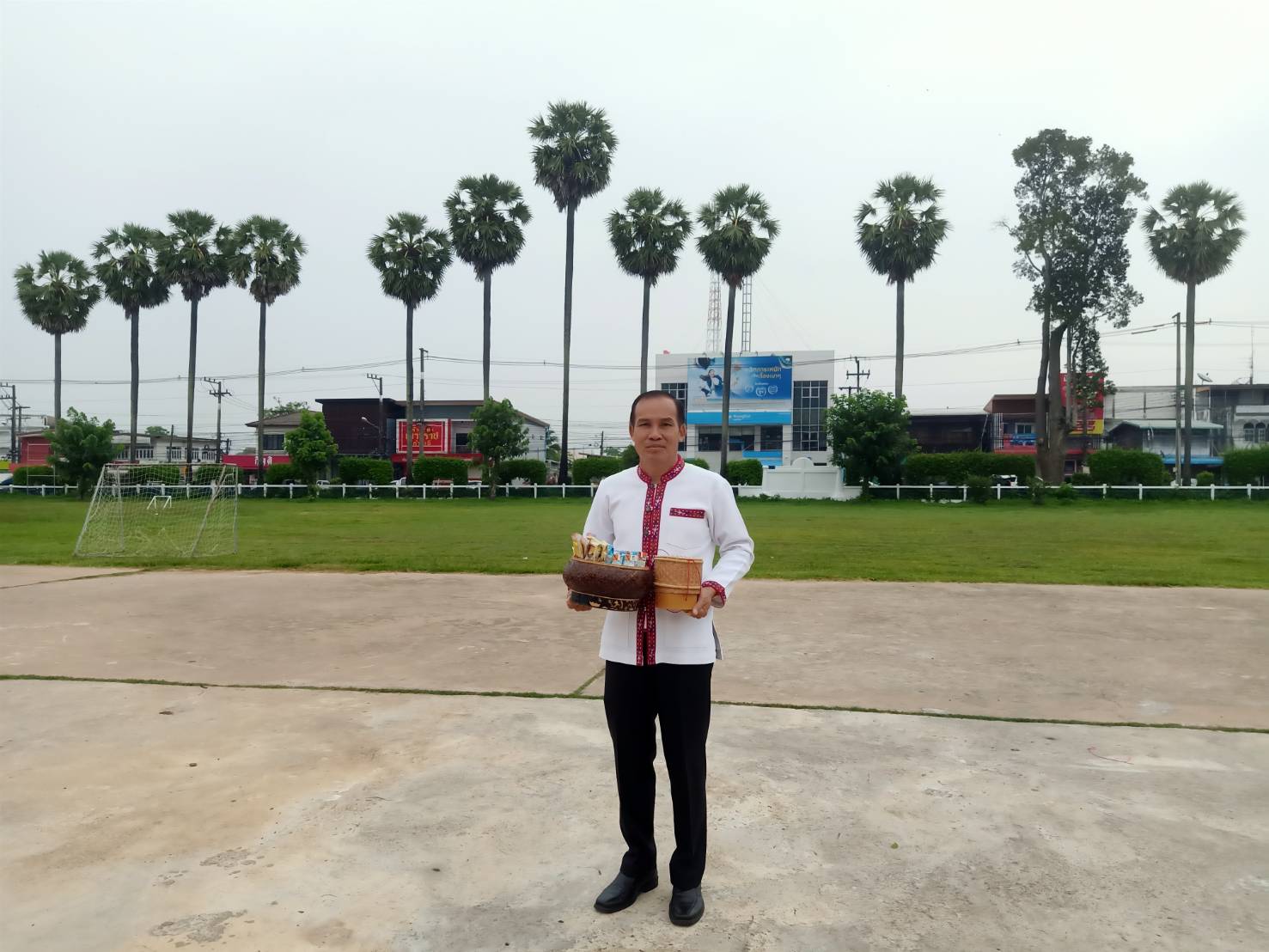 ผอ.บุญชอบ อุสาย ร่วมทำบุญตักบาตรพระสงฆ์ เนื่องในวันครบรอบ ๖๙ ปี ของ อ.คำชะอี