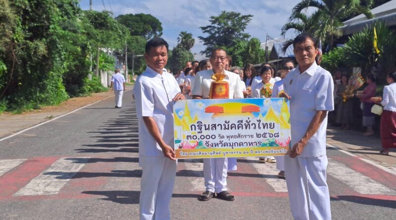 นายบุญชอบ อุสาย ผู้อำนวยการโรงเรียนคำชะอีวิทยาคาร และคณะครู ร่วมทำบุญทอดกฐินสามัคคี ณ วัดพุทธนคราภิบาล ตำบลน้ำเที่ยง อำเภอคำชะอี จังหวัดมุกดาหาร ในวันพุทธ ที่ ๘ ตุลาคม ๒๕๖๘