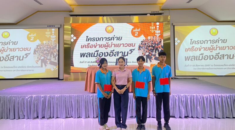 ครูสุวรรณี แจ่มเล็ก ได้นำตัวแทนสภานักเรียน ๓ คน เข้าร่วมโครงการเครือข่ายผู้นำเยาวชนพลเมืองอีสาน ครั้งที่ ๒ วันที่ ๑๗-๑๘ สิงหาคม ๒๕๖๗ ณ โรงแรมแม่โขง เฮอริเทจ อ.เมือง จ.นครพนม