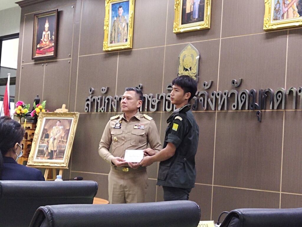นายวรชิต คล่องดี ชั้น ม.5/1 รับทุนการศึกษาจากมูลนิธิร่วมจิตน้อมเกล้า ฯ จากท่านผู้ว่าราชการจังหวัดมุกดาหาร