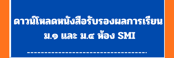 ดาวน์โหลด หนังสือรับรองผลการเรียน ม.๑ ห้อง SMI คลิกที่นี่ ดาวน์โหลด หนังสือรับรองผลการเรียน ม.๔ ห้อง SMI คลิกที่นี่