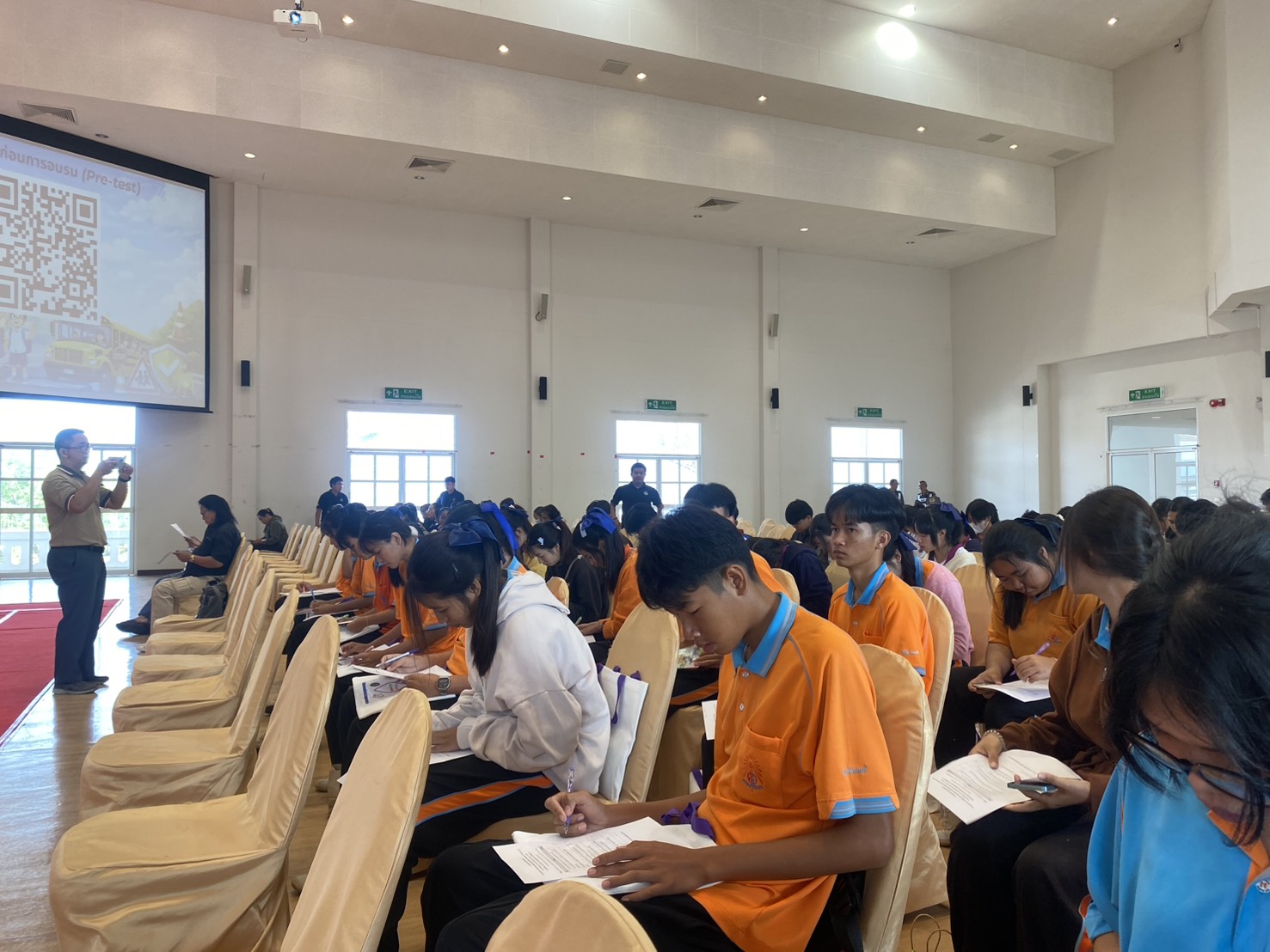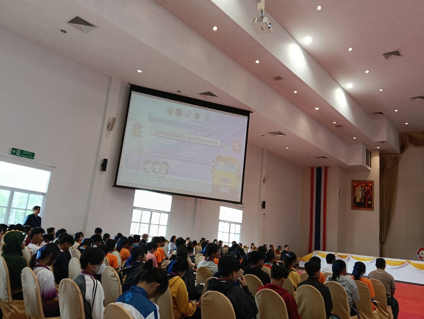 นักเรียนเข้าอบรมตามโครงการเสริมสร้างความปลอดภัย รถรับส่งนักเรียน