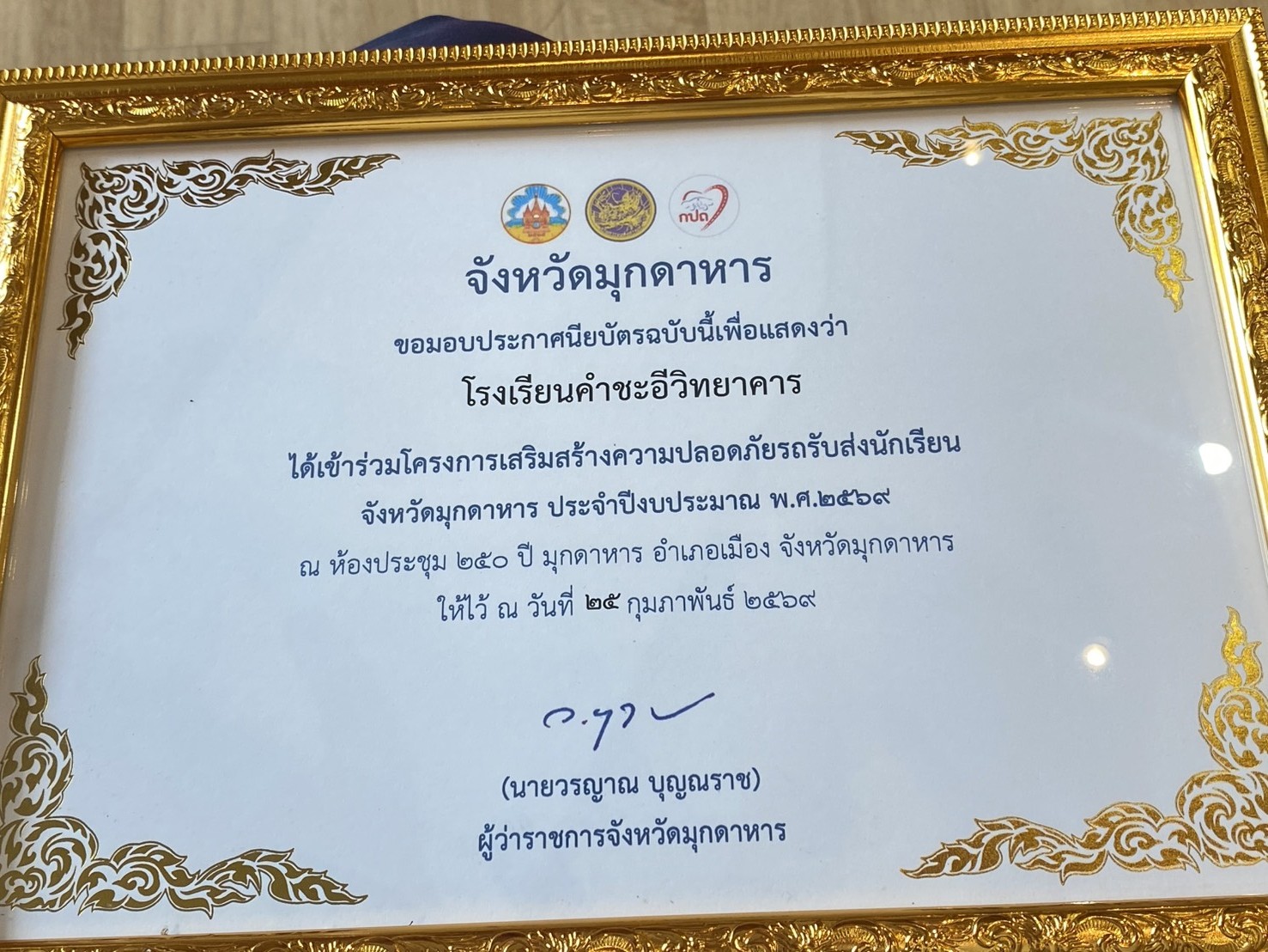 ในวันพุธ ที่ ๒๕ กุมภาพันธ์ พ.ศ.๒ ๕๖๙ นักเรียนโรงเรียนคำชะอีวิทยาคาร จำนวน ๓๑ คน เข้าร่วมการอบรมตามโครงการเสริมสร้างความปลอดภัย รถรับส่งนักเรียน ประจำปีงบประมาณ พ.ศ. ๒๕๖๘ ณ หอประชุม ๒๕๐ ปี มุกดาหาร อำเภอเมืองมุกดาหาร จังหวัดมุกดาหาร